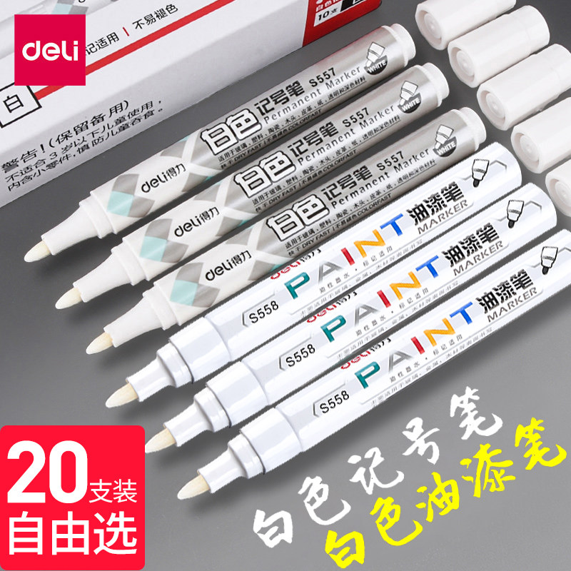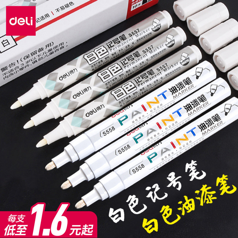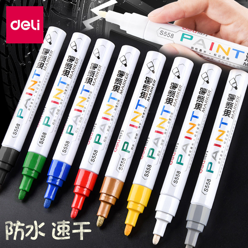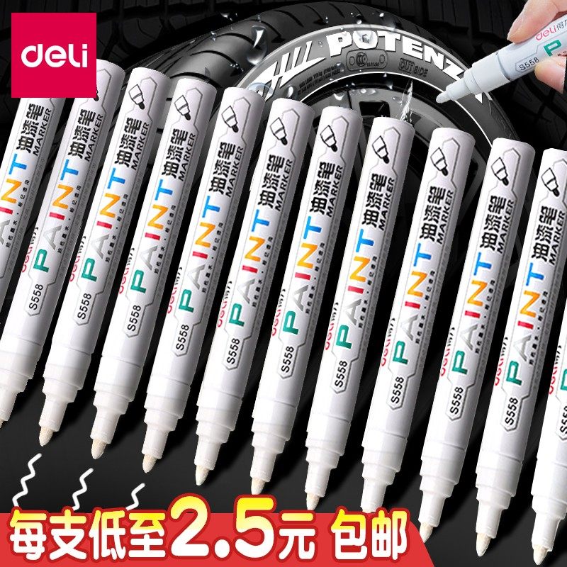 得力油漆笔白色记号笔轮胎补漆工业防水防油不掉色擦洗速干工地专用金属汽车马克涂鸦黑色白漆油性金色描胎边