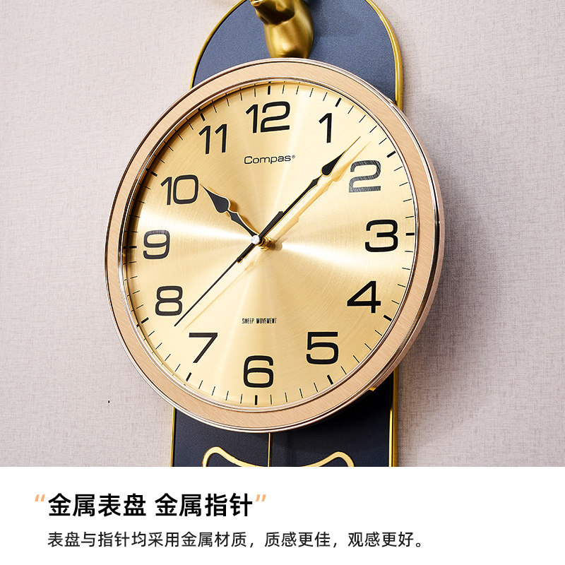 康巴丝复古挂钟客厅家用时尚简约摇摆钟表新中式现代创意石英壁钟