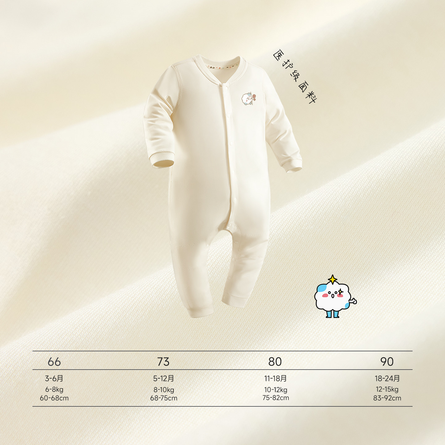 Q21婴童小海绵婴儿连体衣爬服宝宝医护级抑菌新生儿薄款四季哈衣