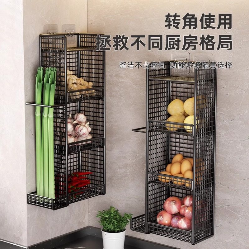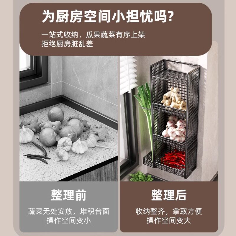 厨房葱姜蒜收纳置物架免打孔墙上壁挂式架多层放果蔬菜篮架子台面