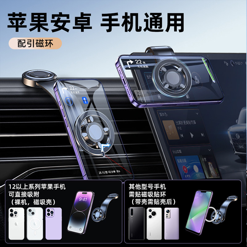 真空吸附磁吸车载手机支架2025新款吸盘车内导航手机架magsafe无线磁吸伸缩折叠便携架子墙壁通用神器