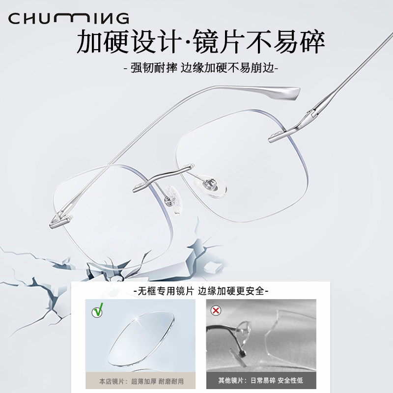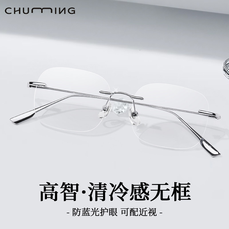 目戏无框眼镜女近视可配度数可选蔡司镜片无边框眼镜框镜架23006