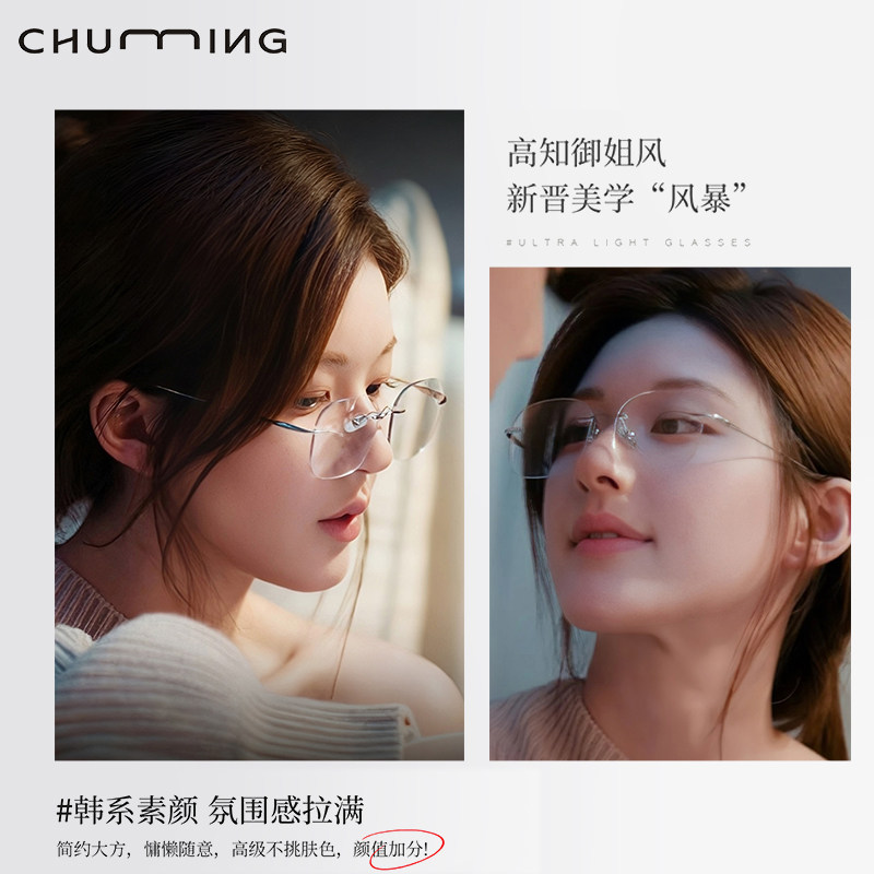许我耀眼赵露思同款眼镜女许妍无框超轻纯钛仅6g近视可配蔡司镜片