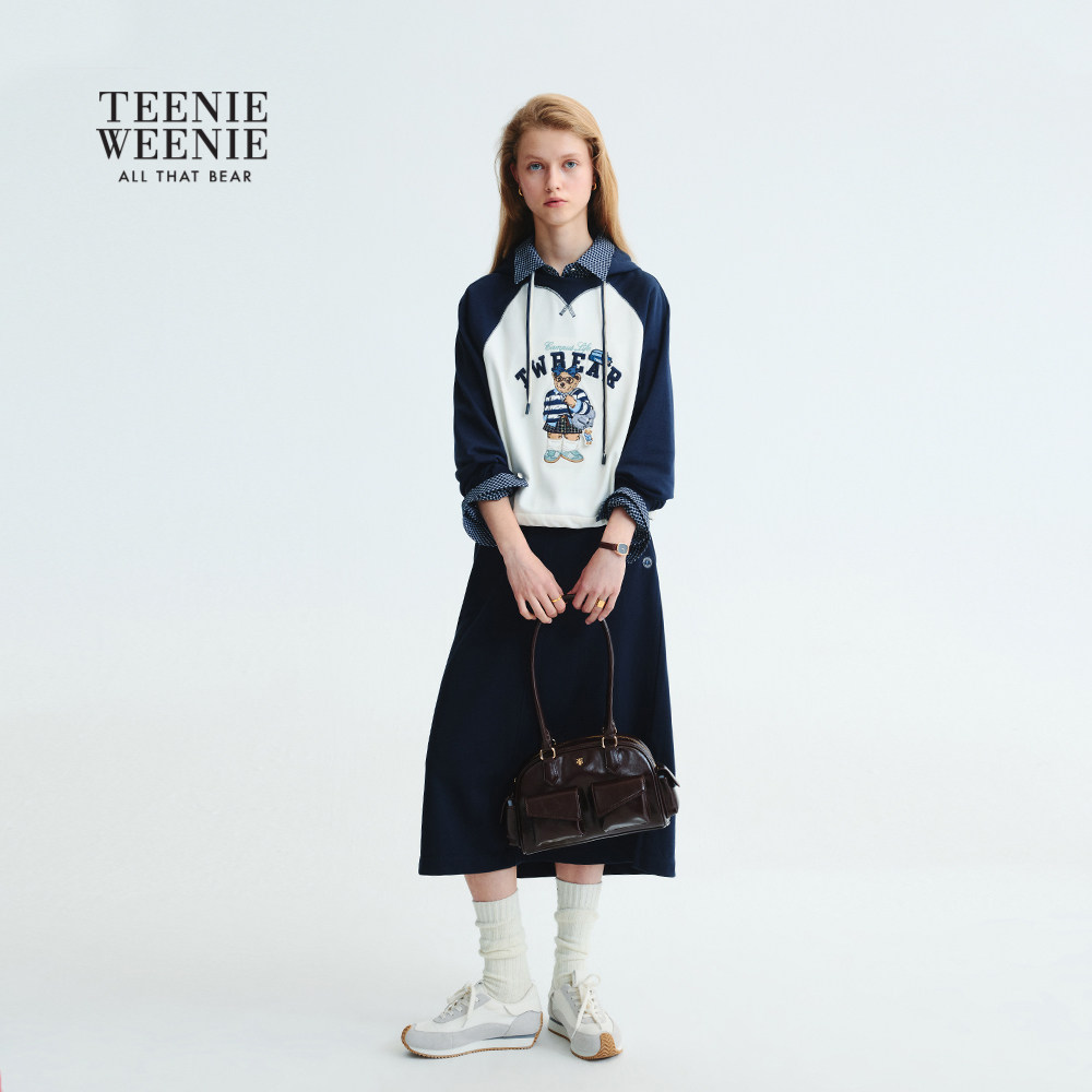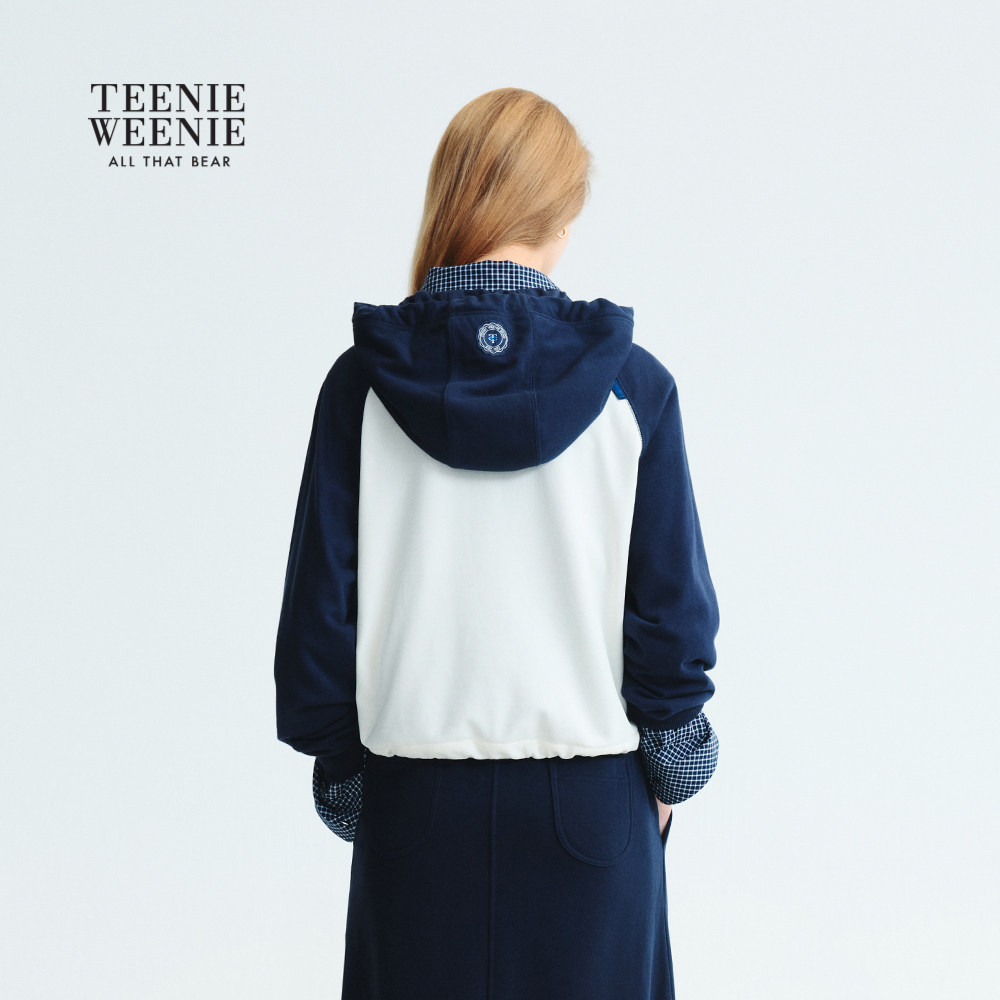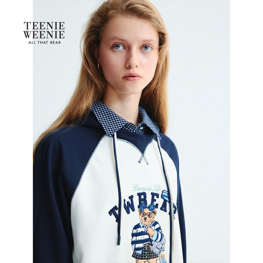 TeenieWeenie小熊女装卫衣2025秋季新款萌趣大熊拼色短款连帽外套