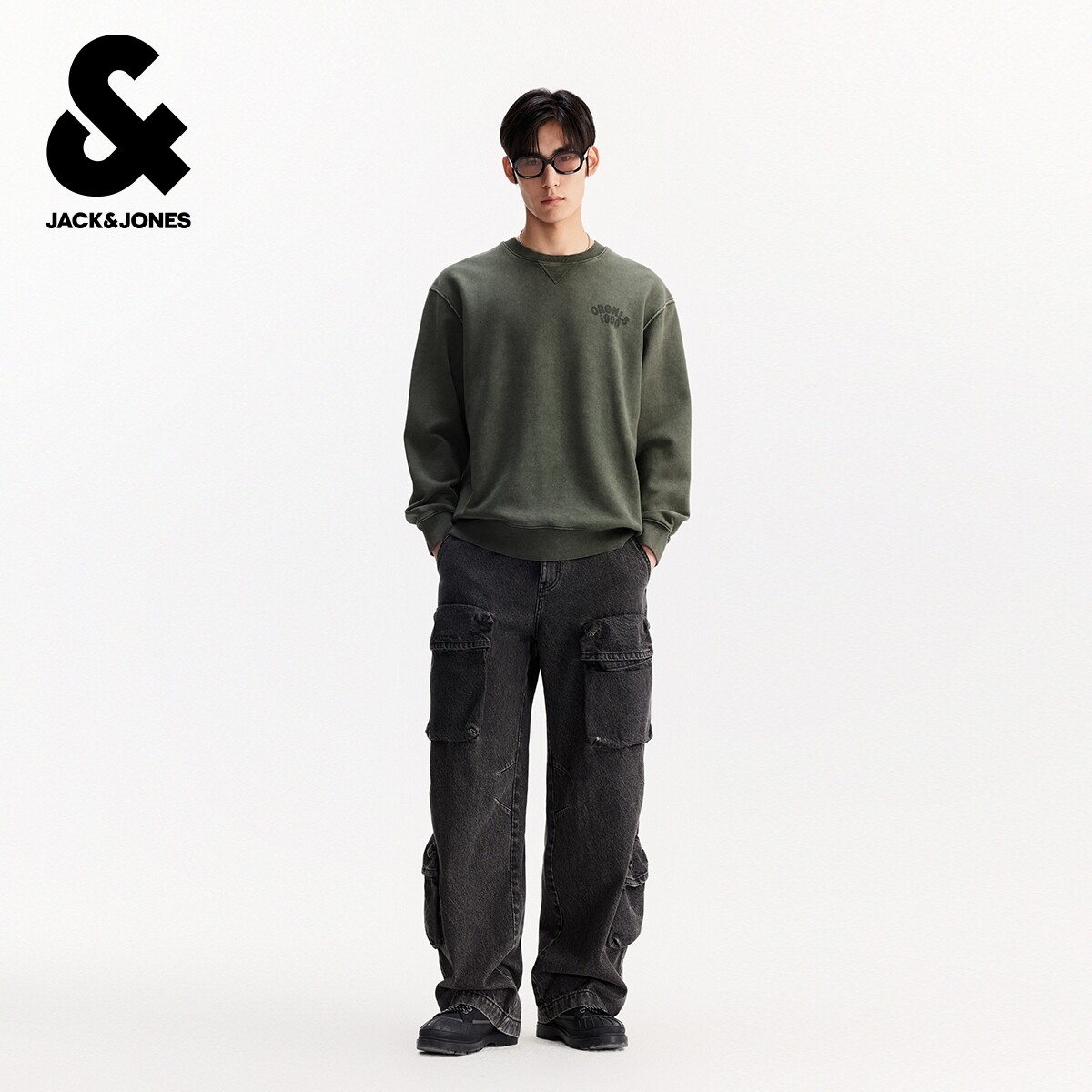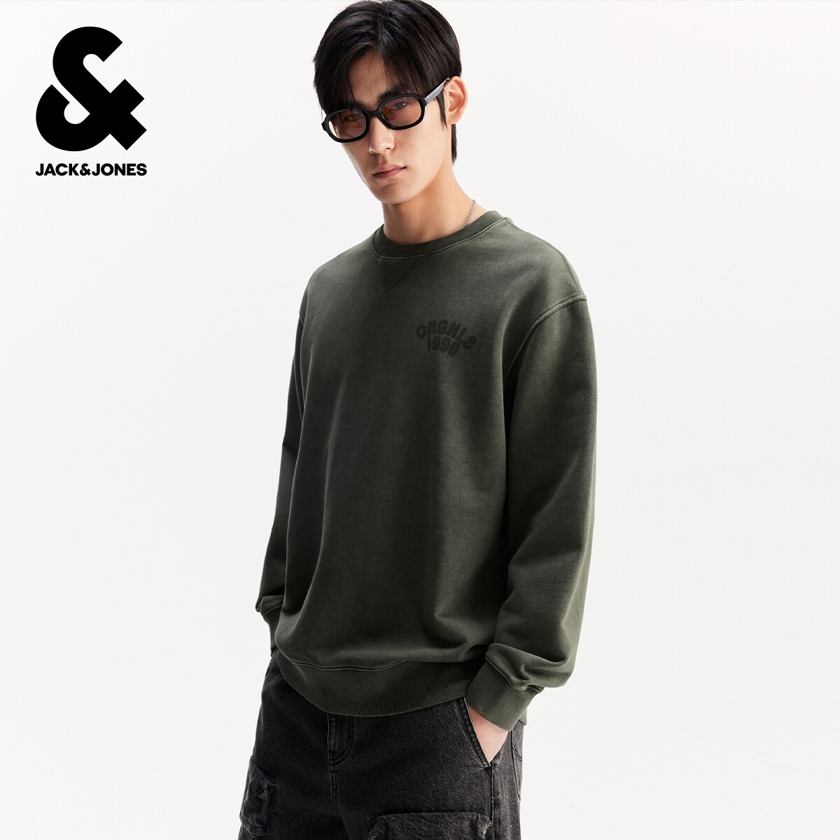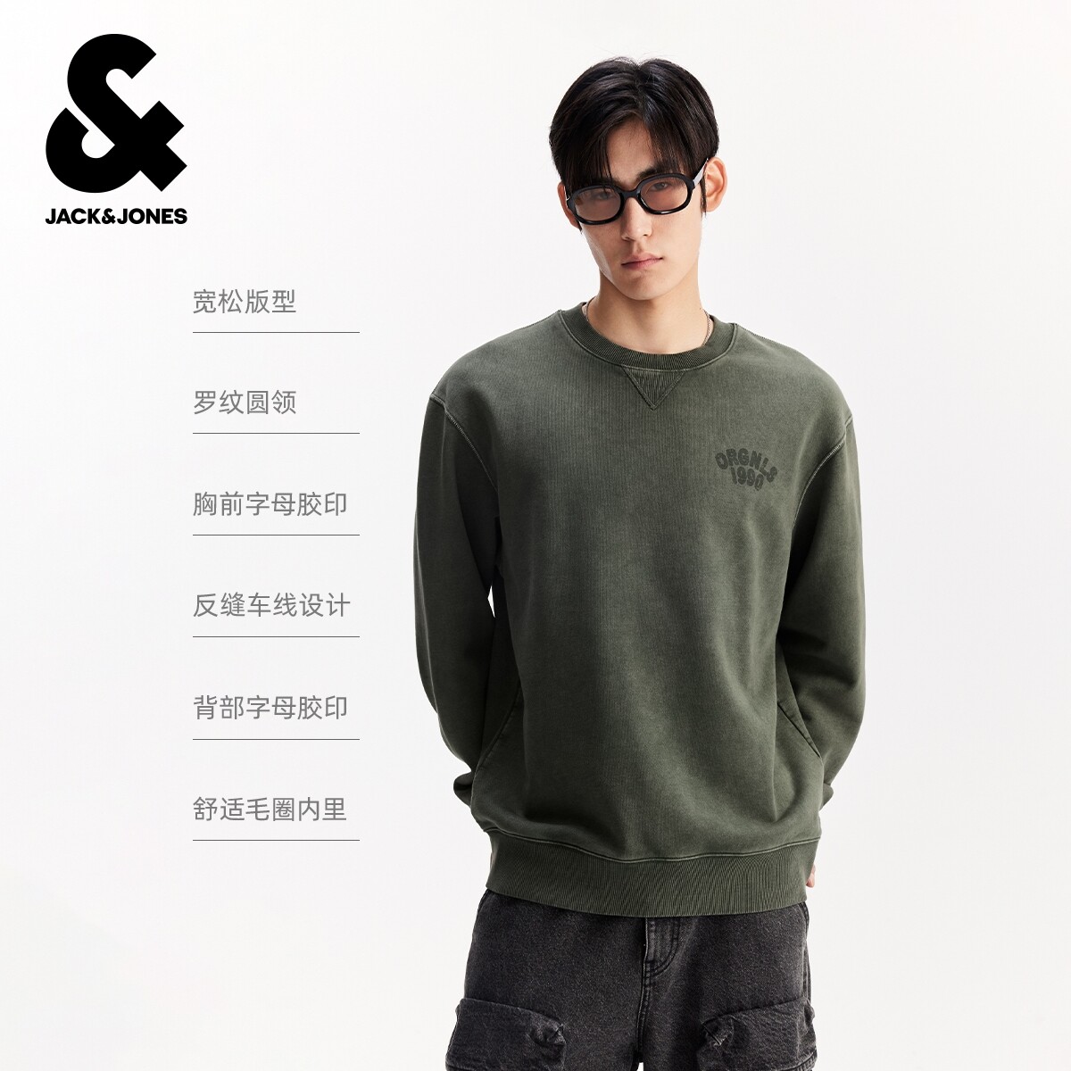 杰克琼斯男装秋冬新款字母胶印纯棉舒适毛圈内里休闲宽松圆领卫衣
