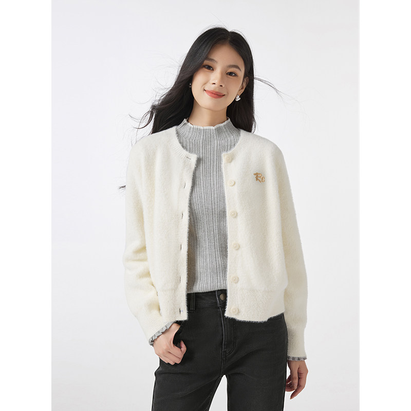 热风针织衫2025年冬季新款女士气质绒感针织开衫韩版通勤针织衫
