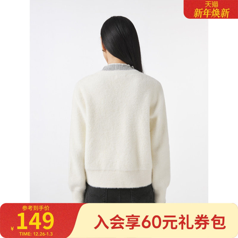 鸭鸭针织衫男女同款2025秋冬反季升温双拼面料保暖长袖打底衫女C