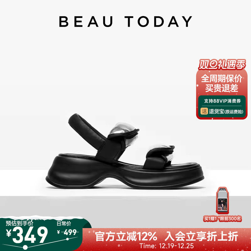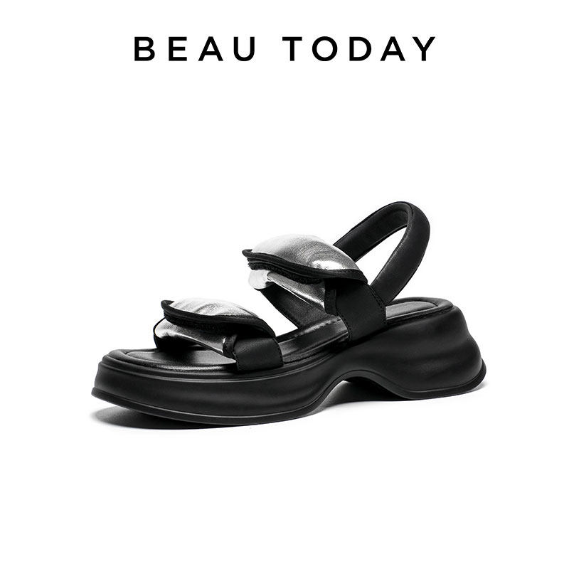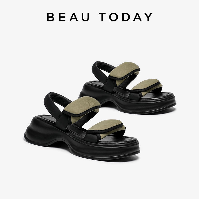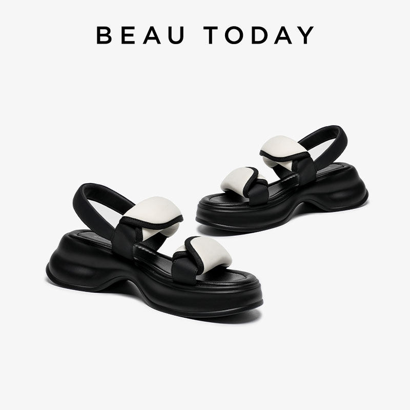 BeauToday厚底罗马凉鞋女夏沙滩凉鞋女增高时装凉鞋BT一字带凉鞋
