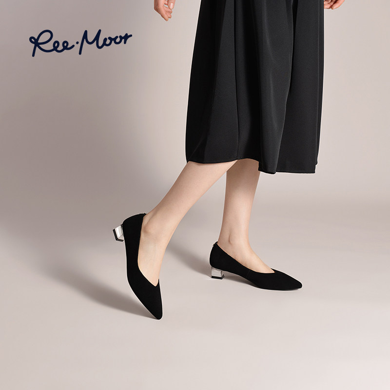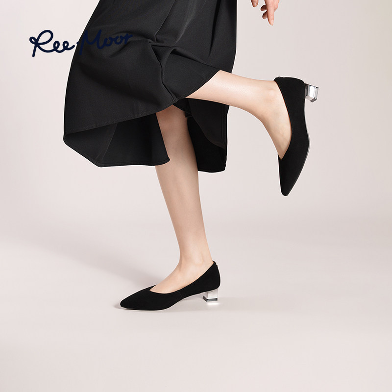REEMOOR气质尖头黑色通勤跟鞋