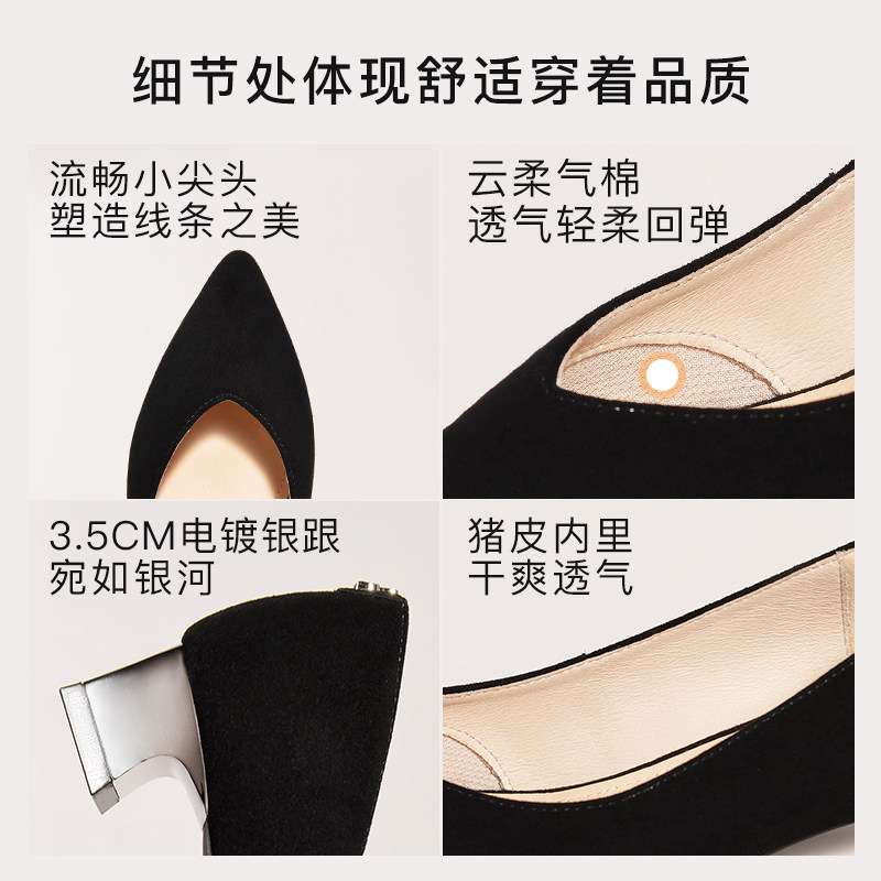73hours女鞋Brittany春秋新款黑色不累脚高跟鞋女尖头通勤单鞋