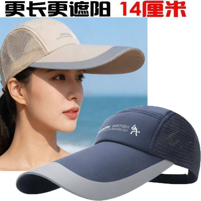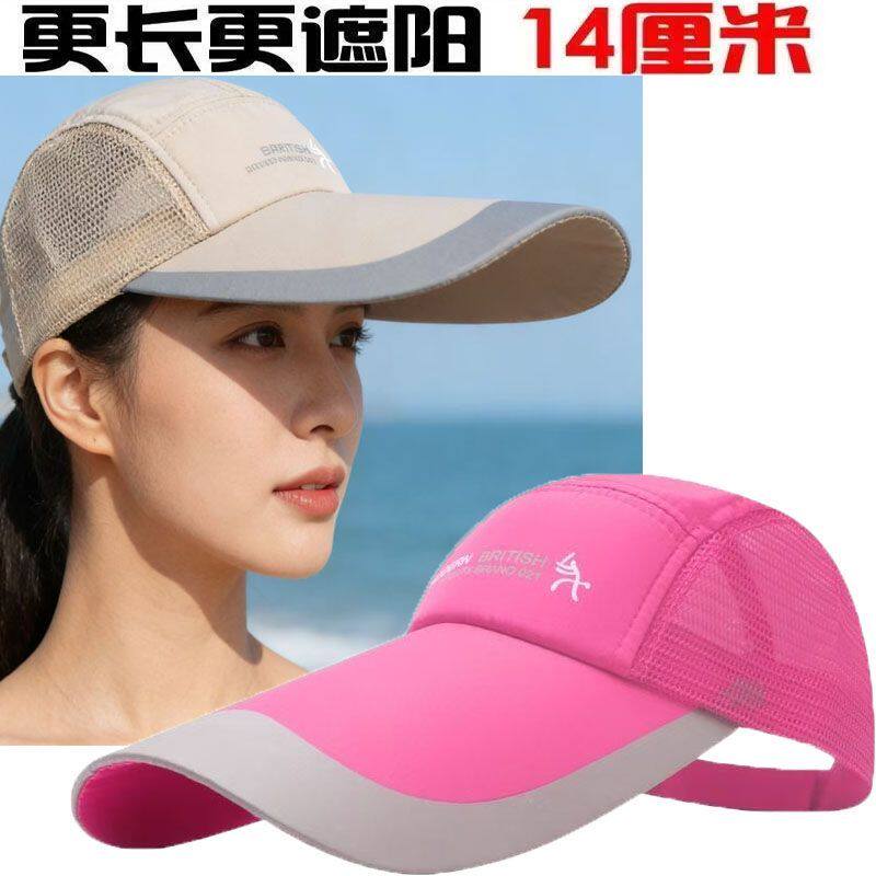 夏季帽子男女加长帽檐遮阳防晒太阳帽棒球帽户外钓鱼网眼红色黑色