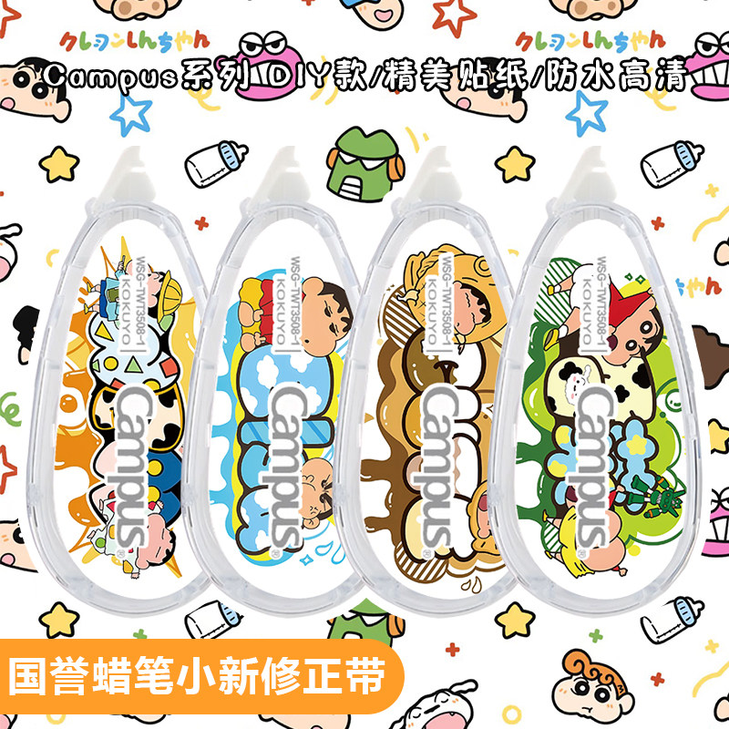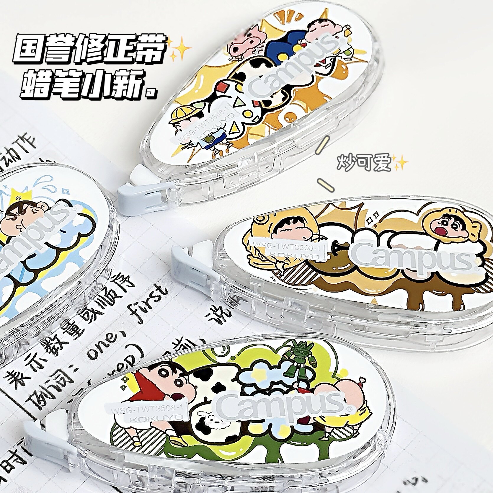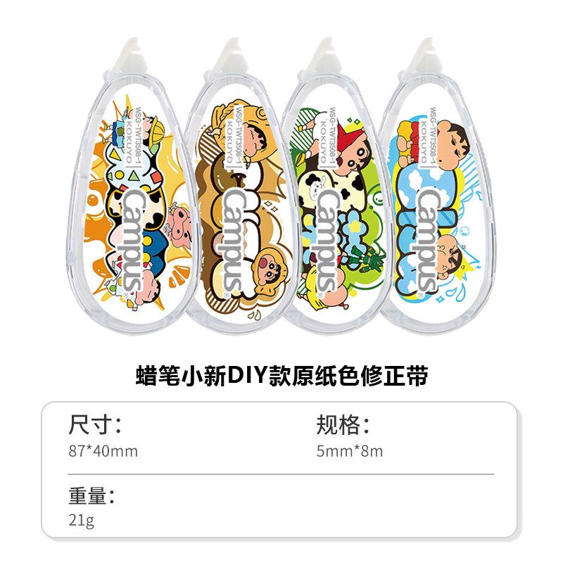 日本KOKUYO国誉修正带蜡笔小新限定DIY款原纸色涂改带Campus系列不显眼改错带学生订正文具可换替芯大容量