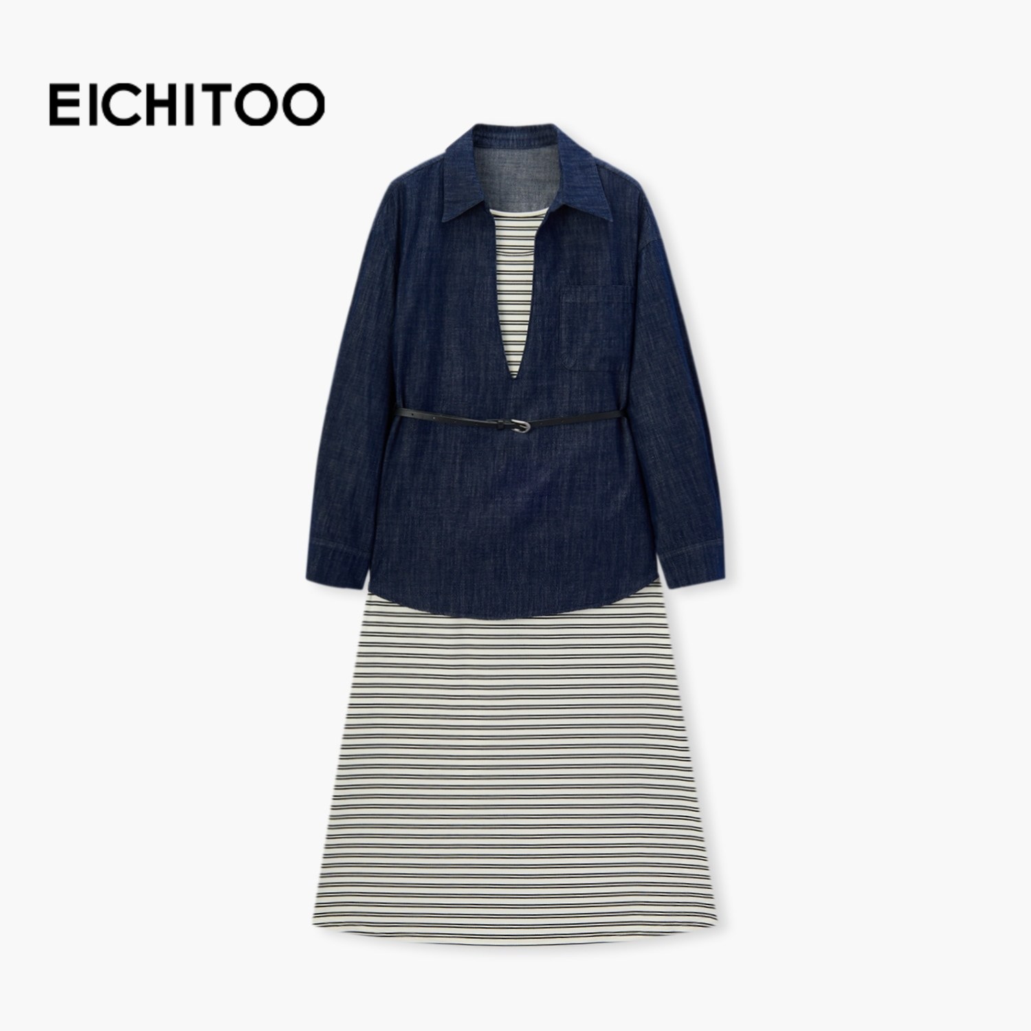 爱居兔棉麻品质两件式连衣裙套装女2025年秋季新款老钱风复古长裙
