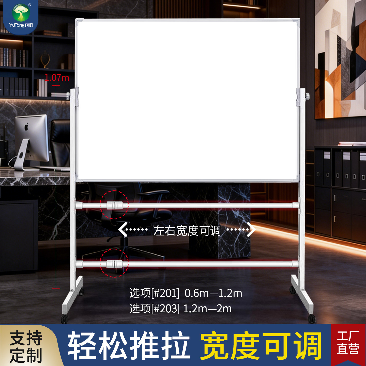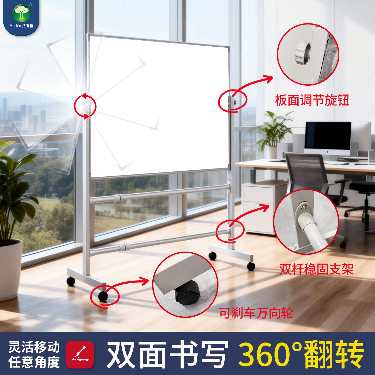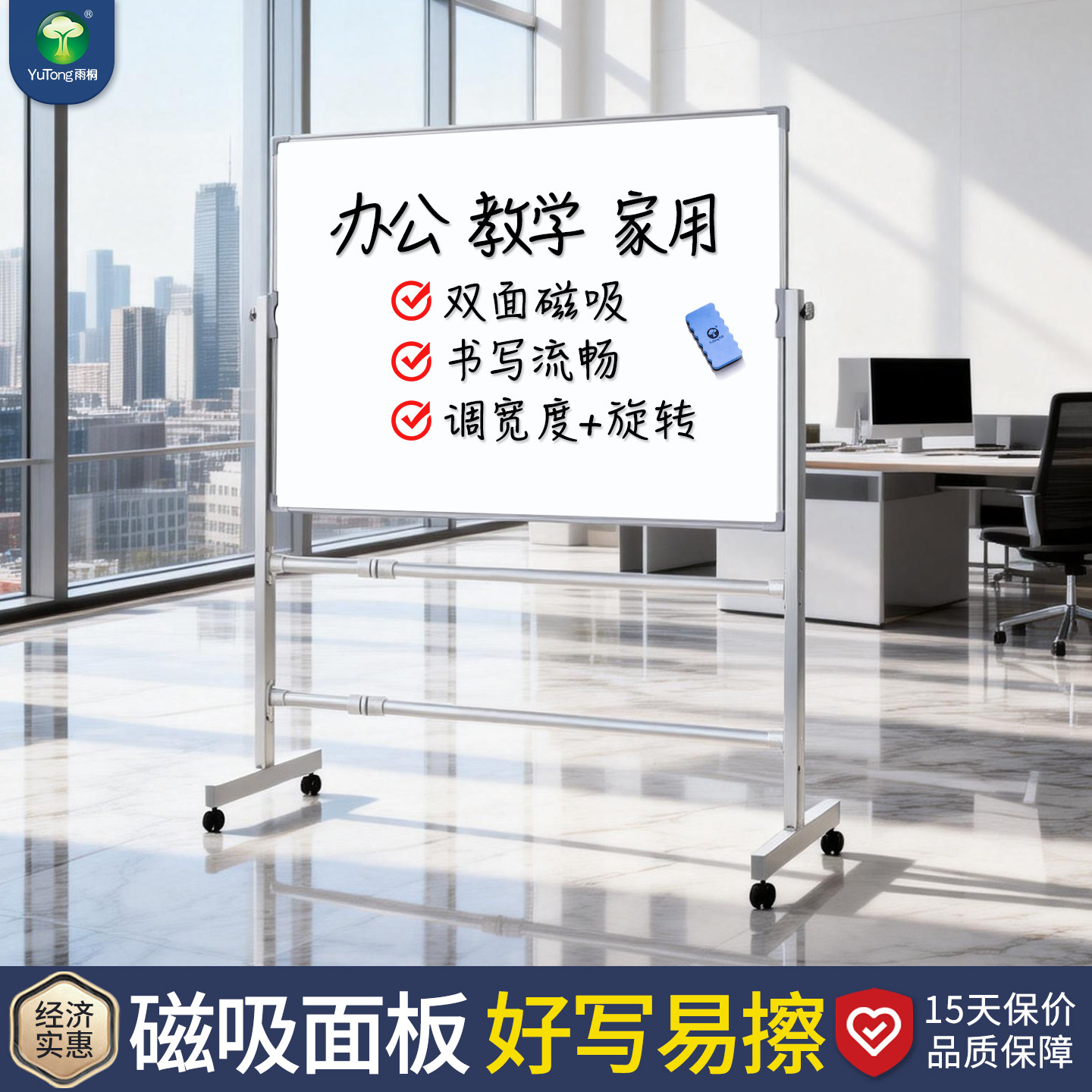 雨桐白板写字板支架式可移动家用小黑板教学培训调整伸缩展板架磁性可擦写小白板带轮黑板支撑架记事板留言板