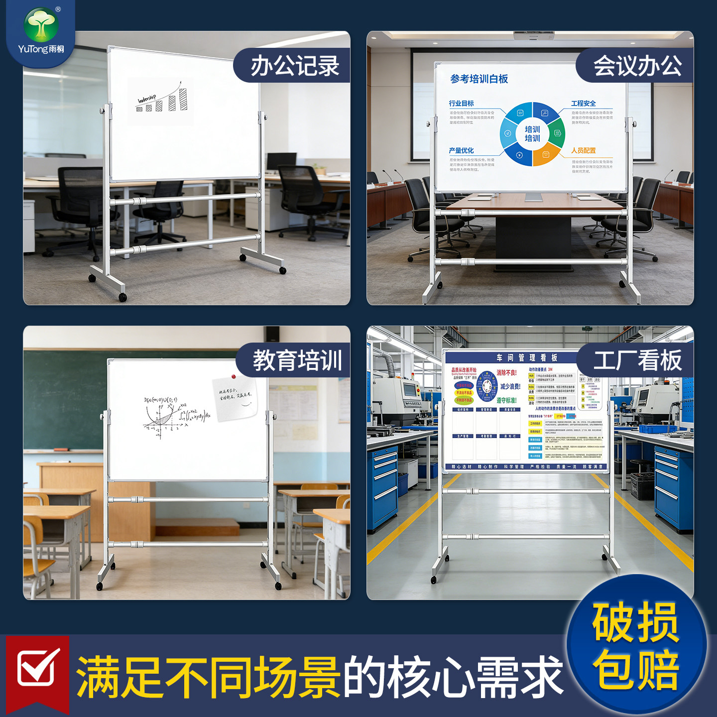 齐富3年0擦痕白板支架式升降白板移动家用儿童教学培训双面磁性小黑板记事看板留言办公可擦写翻转白板写字板
