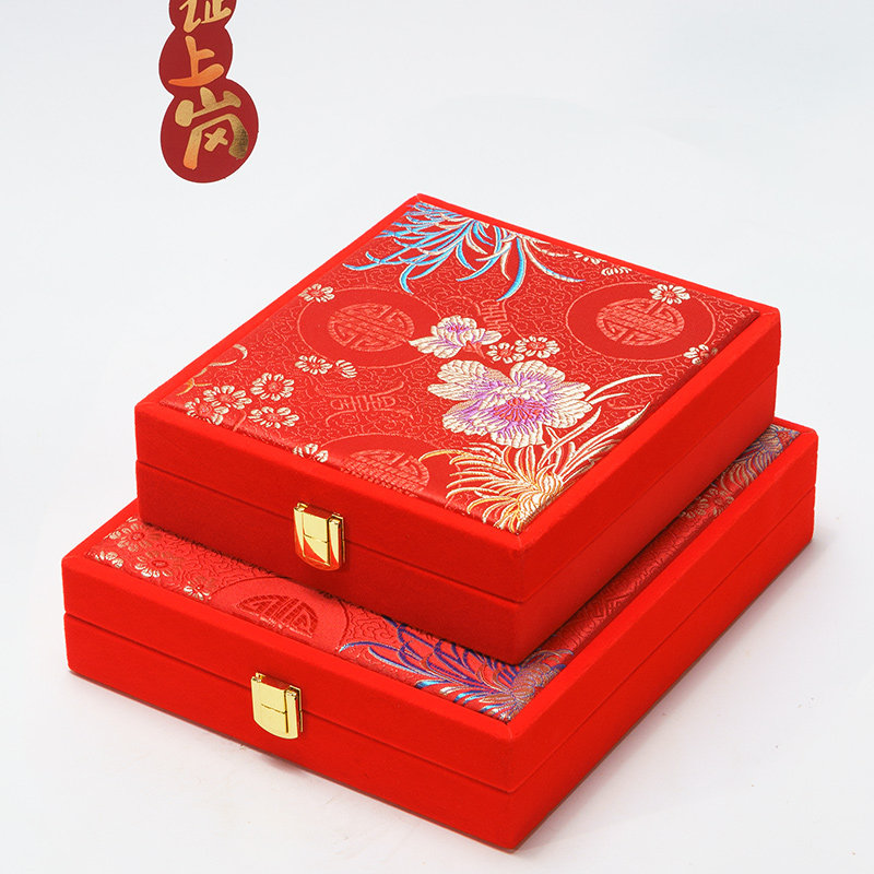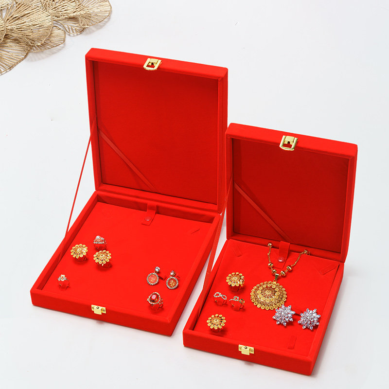 三金首饰盒高档绒布礼盒项链戒指手链结婚订婚黄金首饰收纳盒可拆