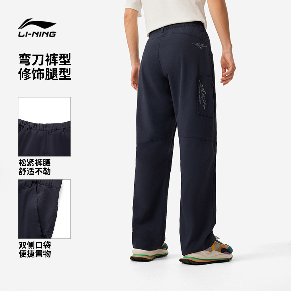 李宁弯刀裤官方正品休闲工装裤男款直筒黑色卫裤休闲裤子跑步长裤