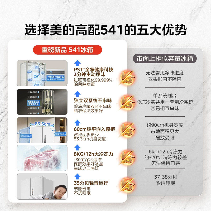 美的M60超净541超薄零嵌双系统冰箱十字双开四门家用大容量无霜