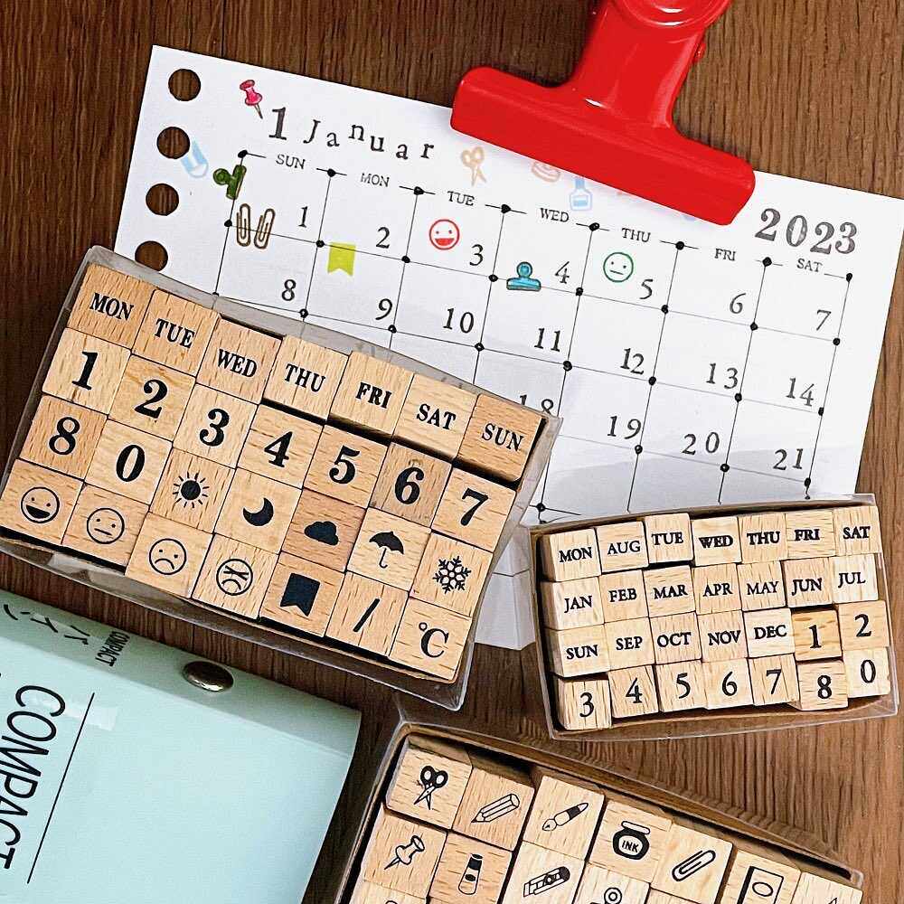 日本KODOMO NO KAO童颜木制印章字母数字日历手账印画备日程日期打卡印章