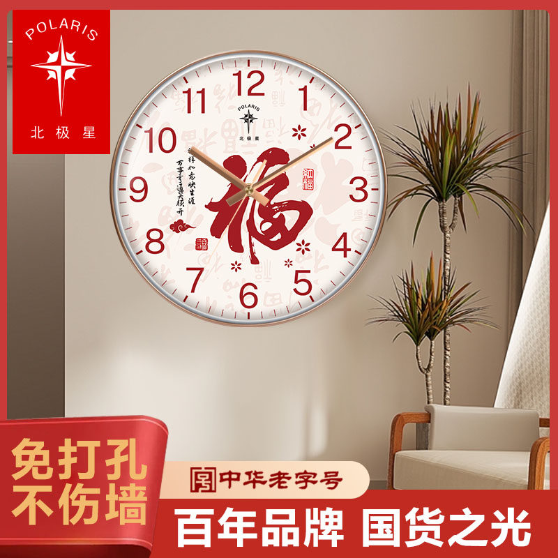 北极星石英钟挂钟家字装饰书房客厅简约新中式挂墙家用电波时钟表