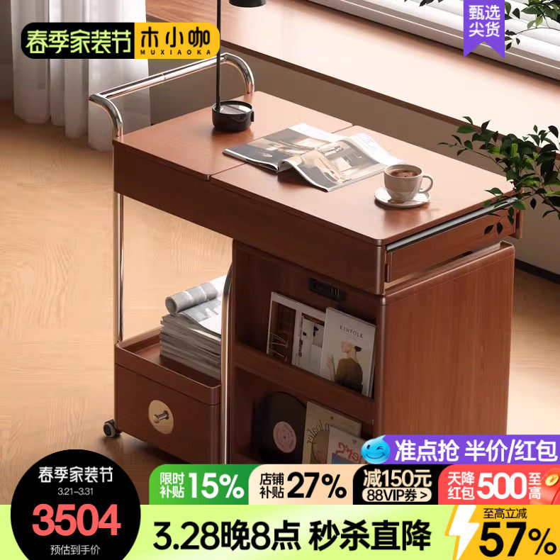 木小咖 可移动伸缩茶水柜带烧水沙发边几家用实木多功能茶台桌