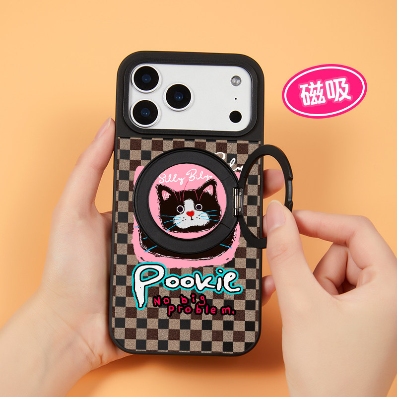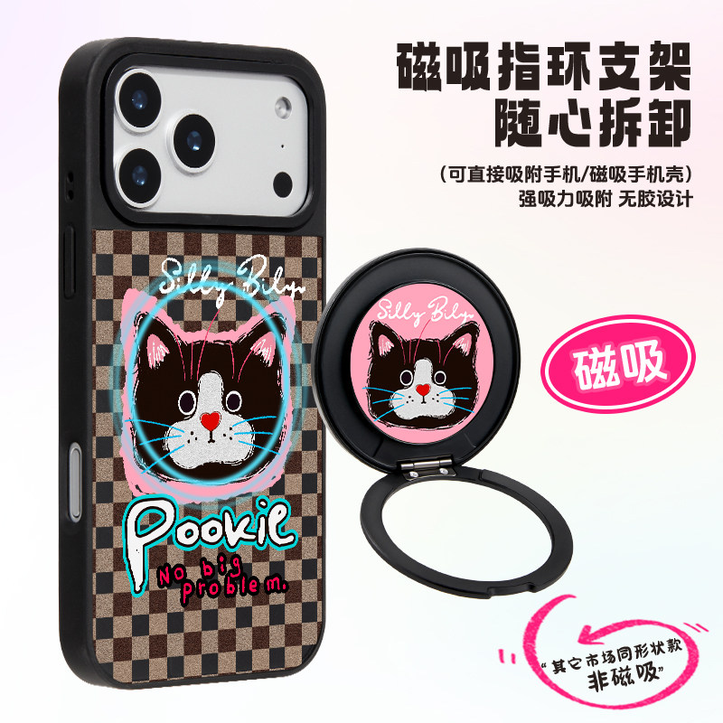 原创磁吸指环扣手机金属支架可爱背贴360度万向旋转桌面黑色猫咪