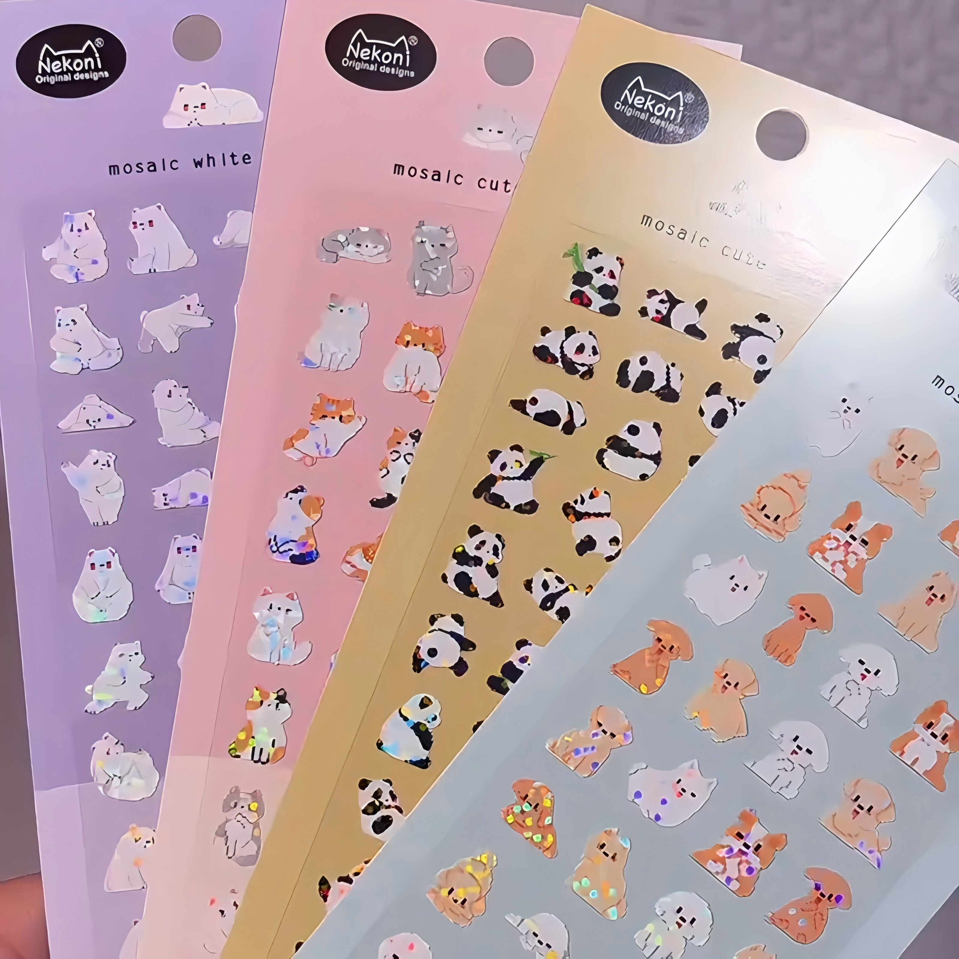 NEKONI马赛克可爱卡通熊猫手机镜头贴纸猫咪日记手帐PVC装饰贴画