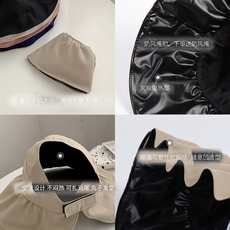 夏季新款网红防晒贝壳帽可折叠大帽簷遮阳帽黑胶遮脸帽全脸黑色