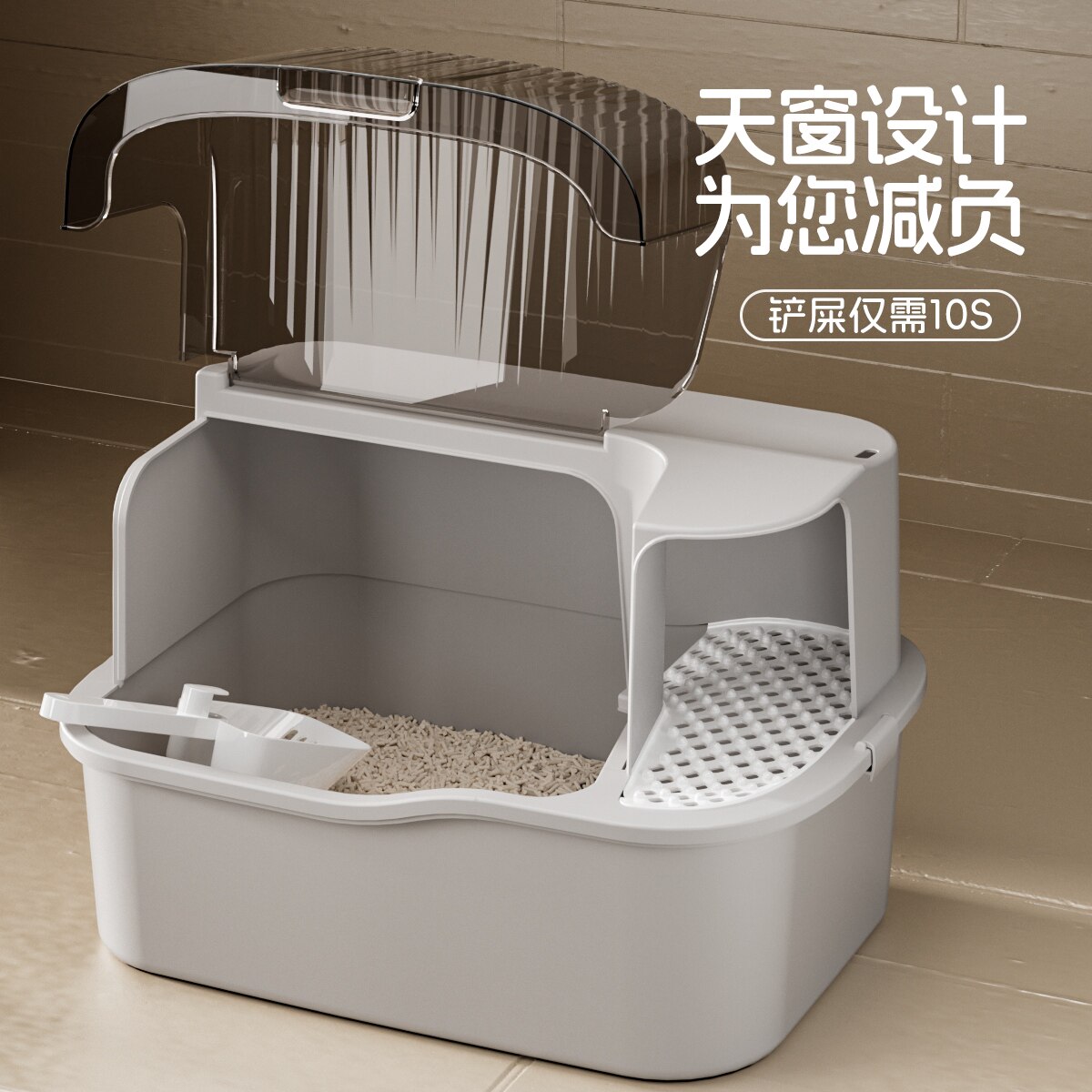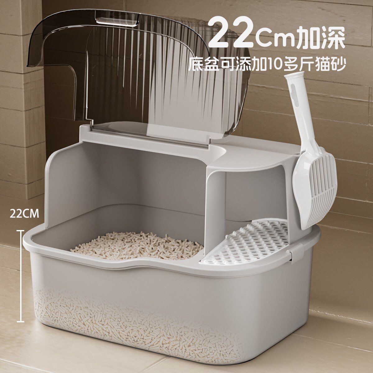 萌尾猫砂盆超大号全封闭式防臭走廊一体式猫厕所防外溅特大猫沙盆