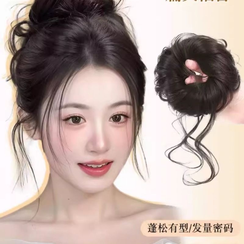 龙须丸子头假发发圈仿真发蓬松增发量千金风盘发神器假发包花苞头