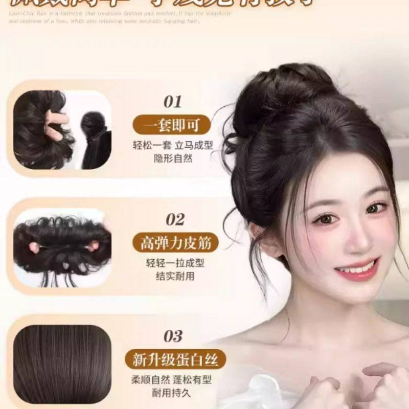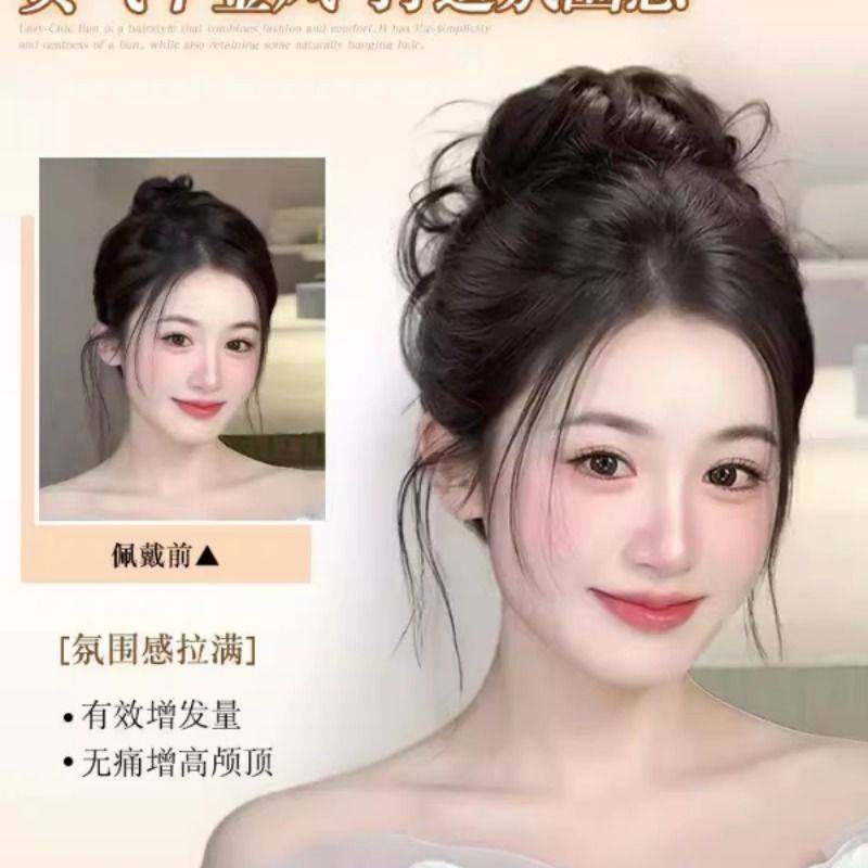 低扎丸子头假发鸡毛头抓夹盘发发包慵懒感造型头饰自然蓬松后脑勺