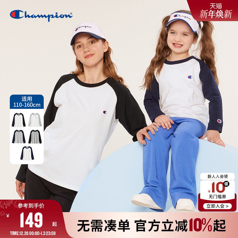 Champion冠军儿童装25秋季新款男女大小童亲子薄舒适插肩长袖T恤