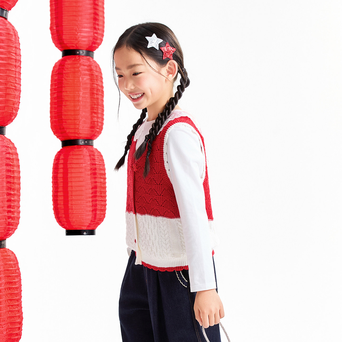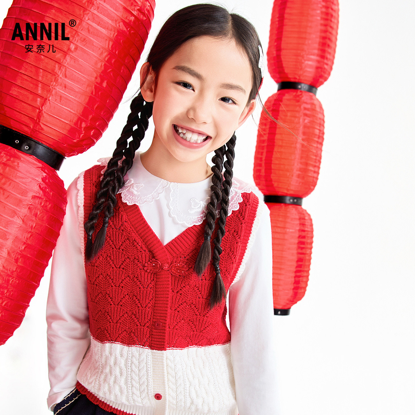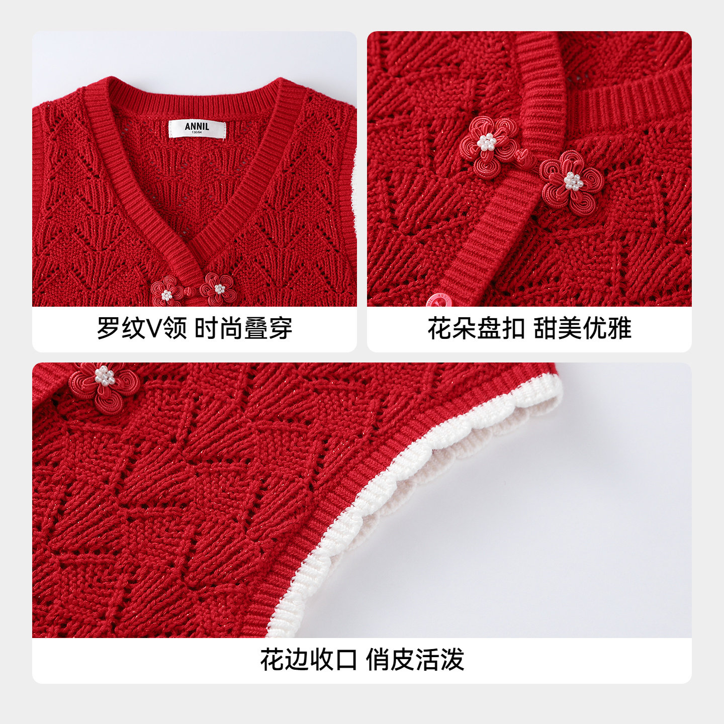 【商场同款】安奈儿童装女童毛衣针织背心2026春新款轻薄AG612015