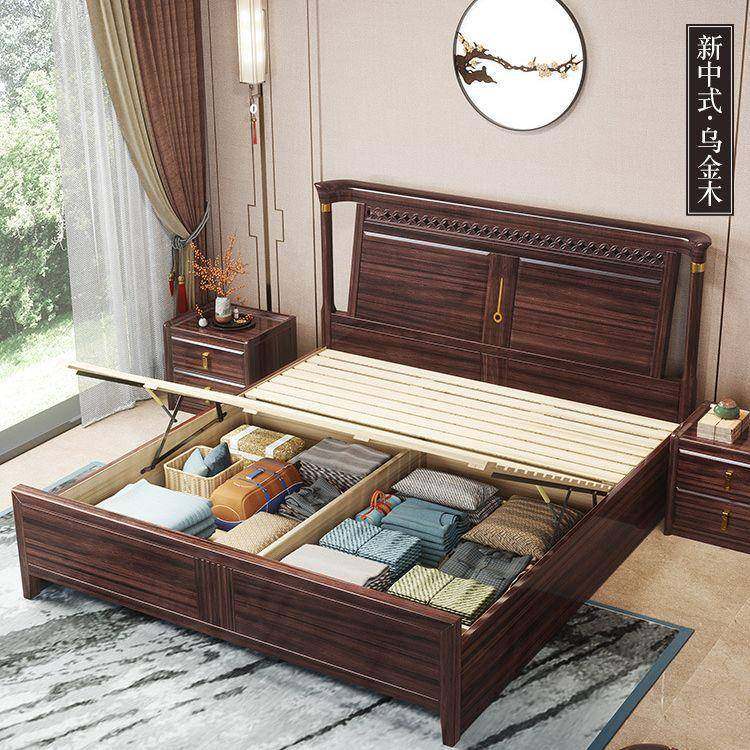 新中式乌金木实木床储物高档主卧室婚床现代简约中国风高端家具