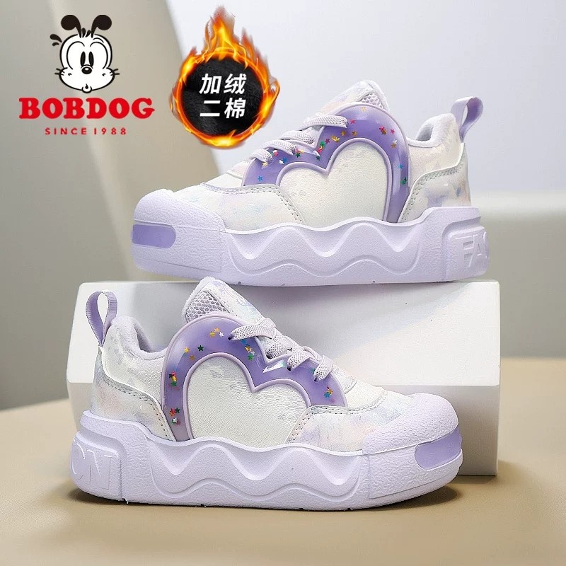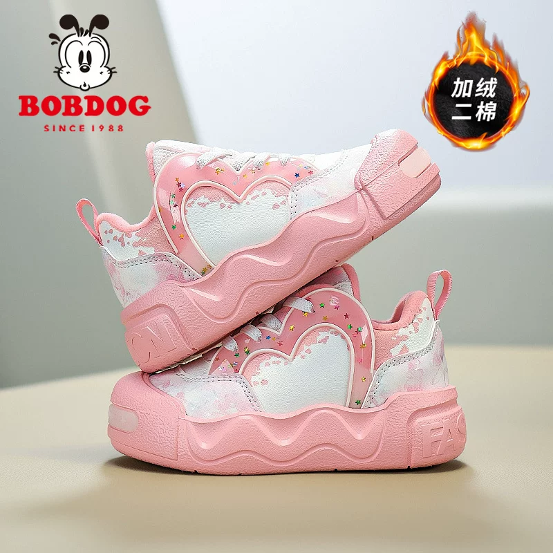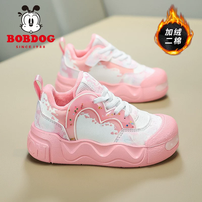 巴布豆加绒女童运动鞋2025冬季新款保暖女孩棉鞋休闲儿童跑步鞋子