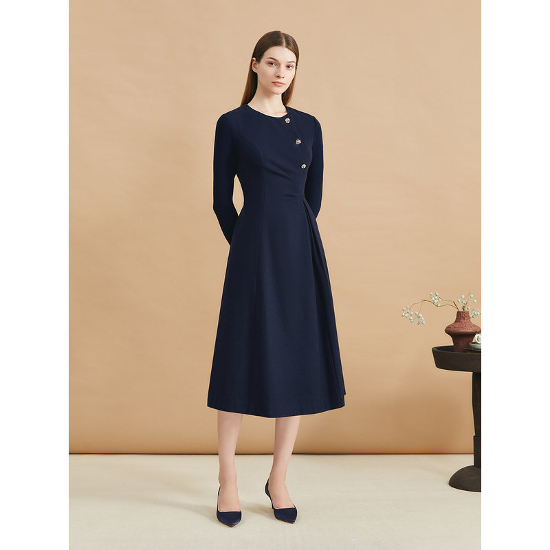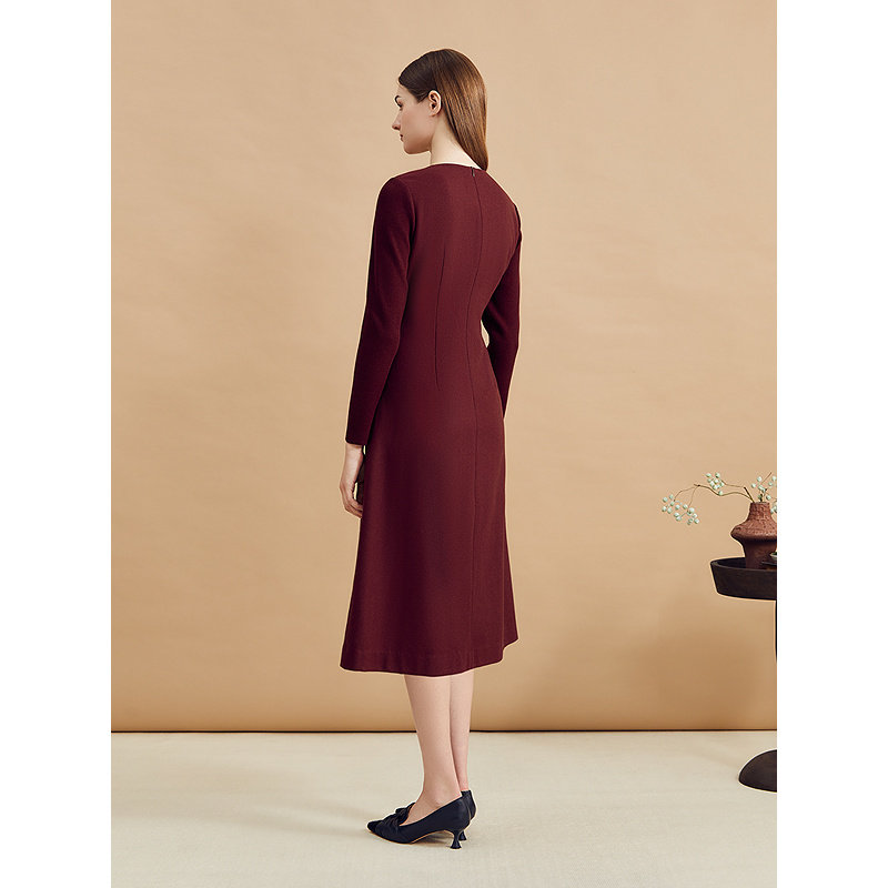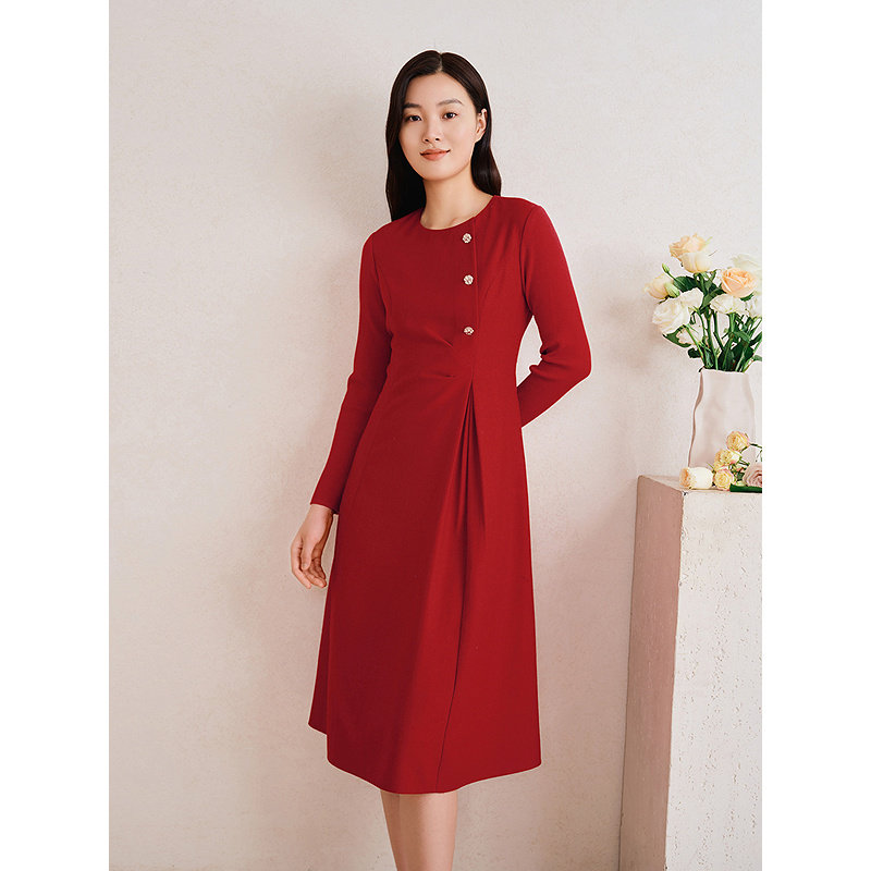 【中国红】YINER音儿专选冬季羊毛侧门禁捏褶收腰连衣裙