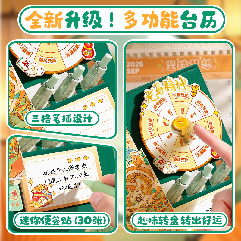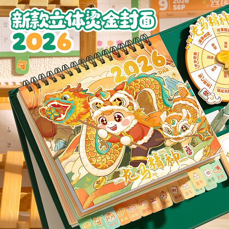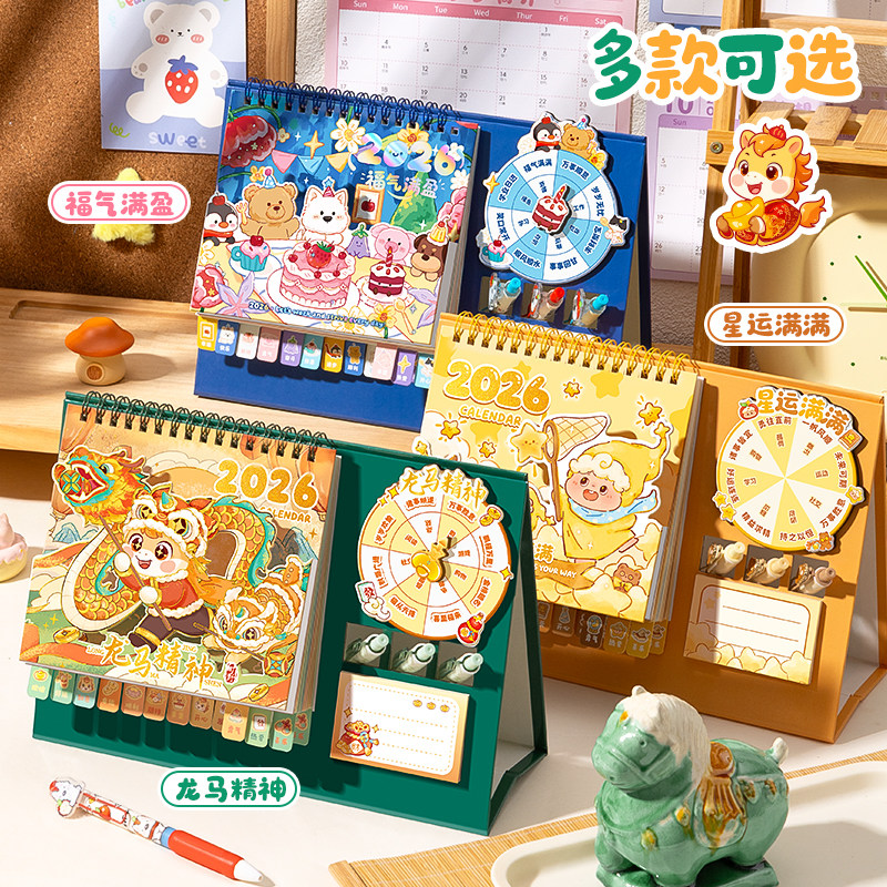 台历2026年新款星运满满卡通转盘日历本原创创意办公桌面摆件马年计划记事本备忘录学生自律打卡中高考倒计时