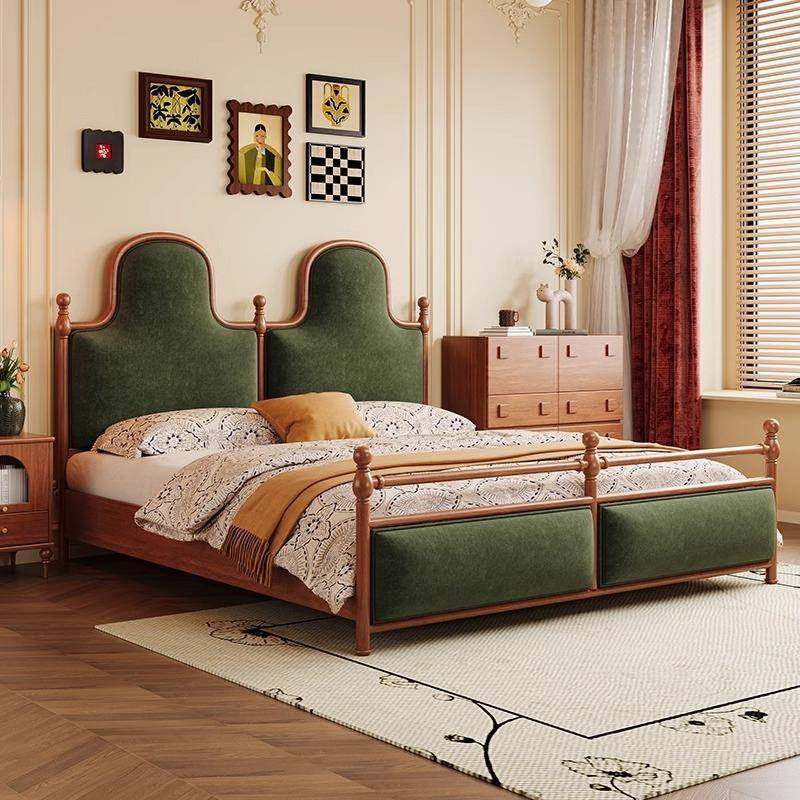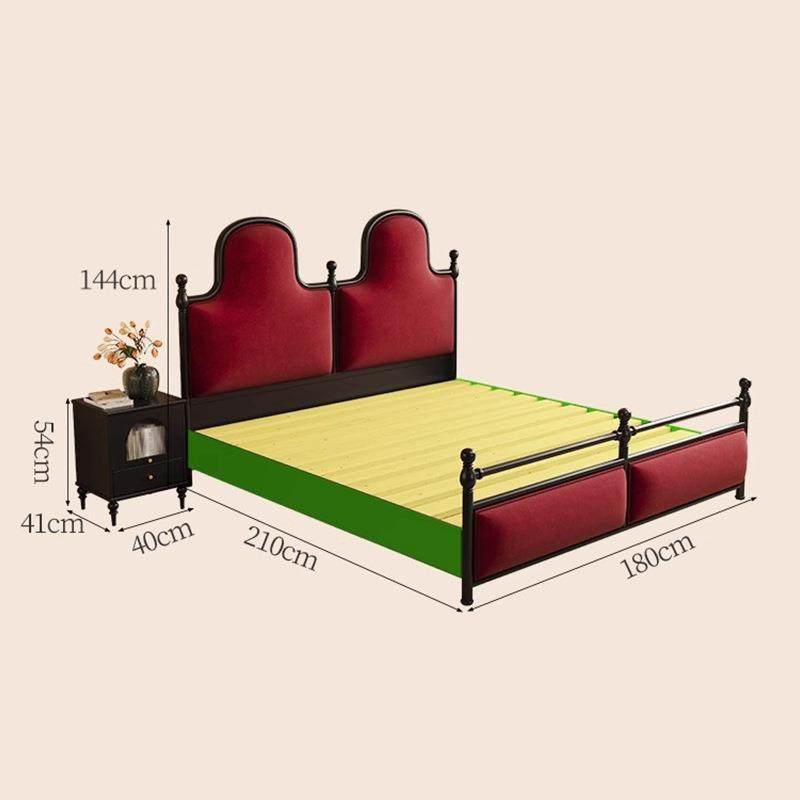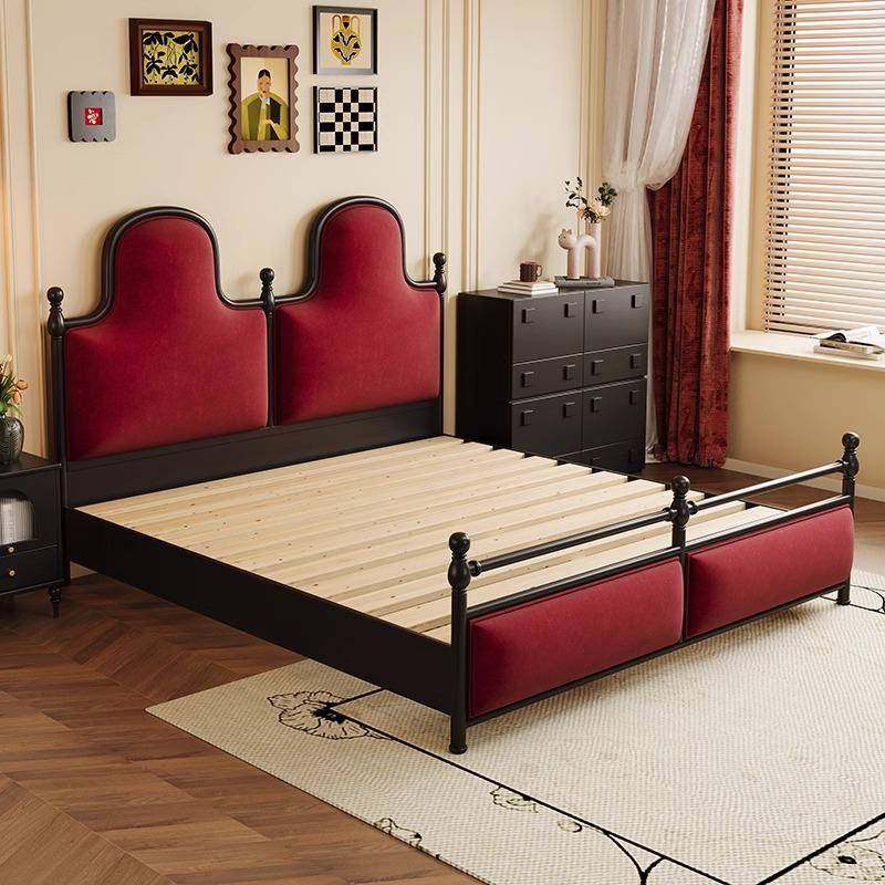 中古风绒布布皮艺床红色法式复古风主卧床1.8m双人床高箱储物软床