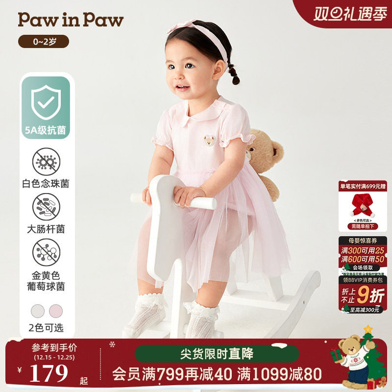【5A抗菌】PawinPaw卡通小熊童装25年春夏新款女宝宝公主裙爬服