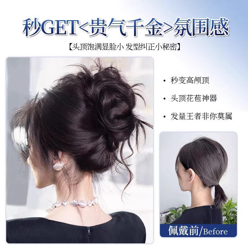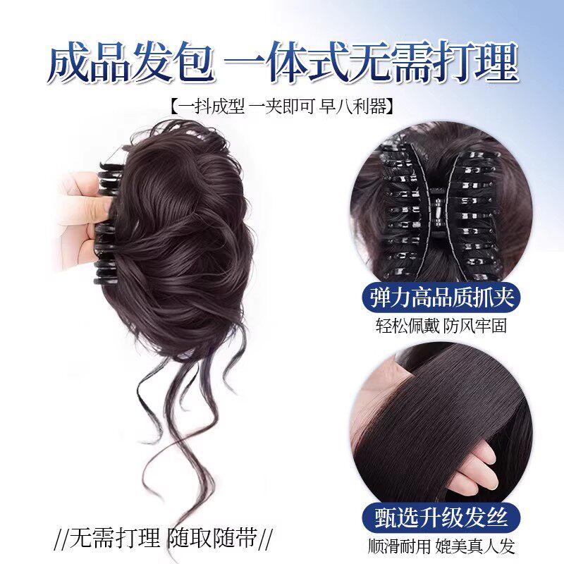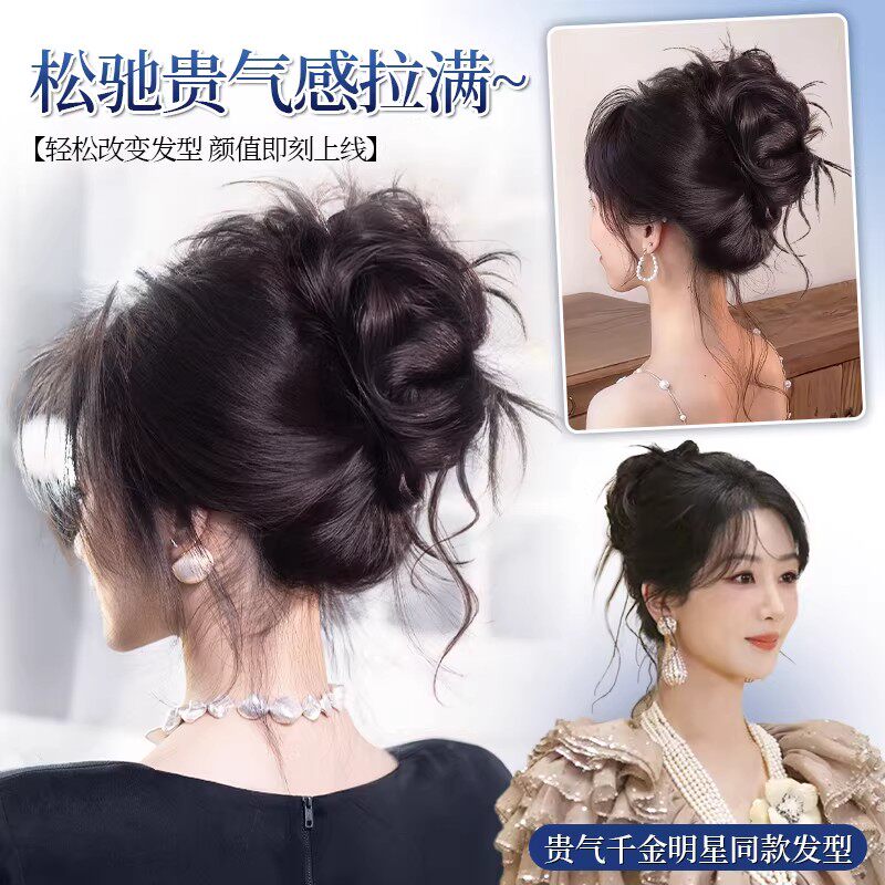 低扎丸子头假发鸡毛头抓夹盘发发包慵懒感造型头饰自然蓬松后脑勺