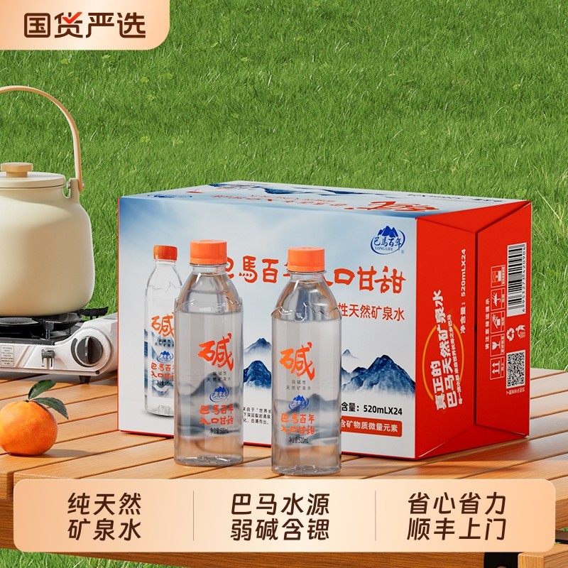 巴马百年弱碱性天然矿泉水520ml*24小分子水小瓶饮用水巴马上门