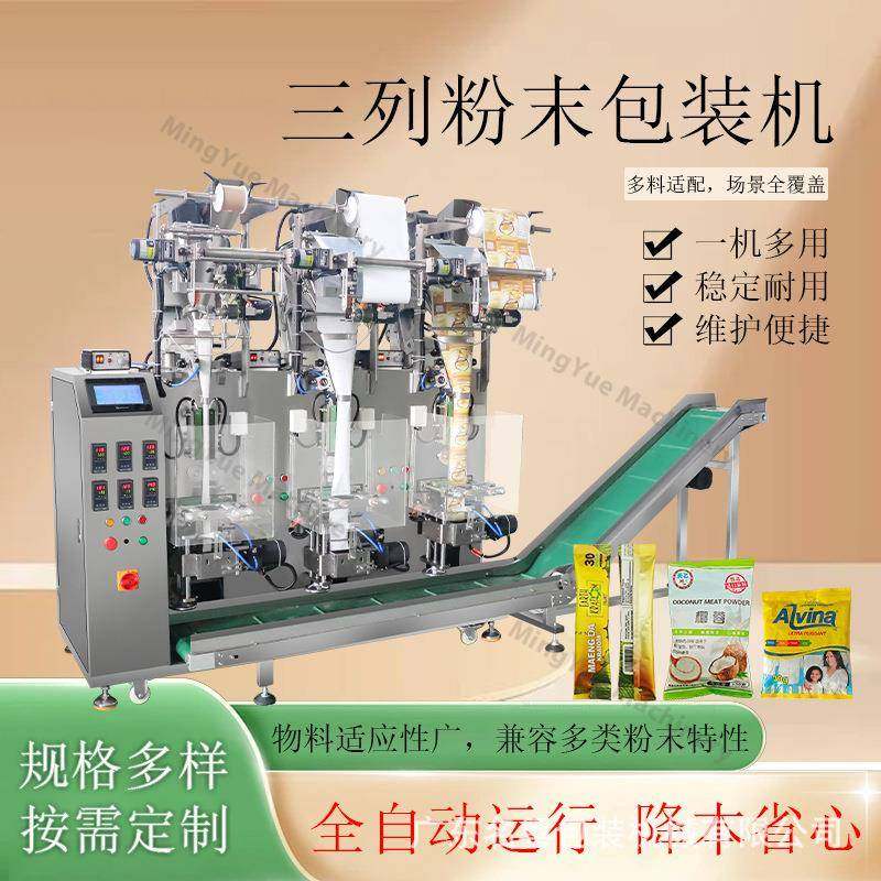定制全自动三列粉末包装机螺杆下料咖啡粉豆浆玉米淀粉立式包装机