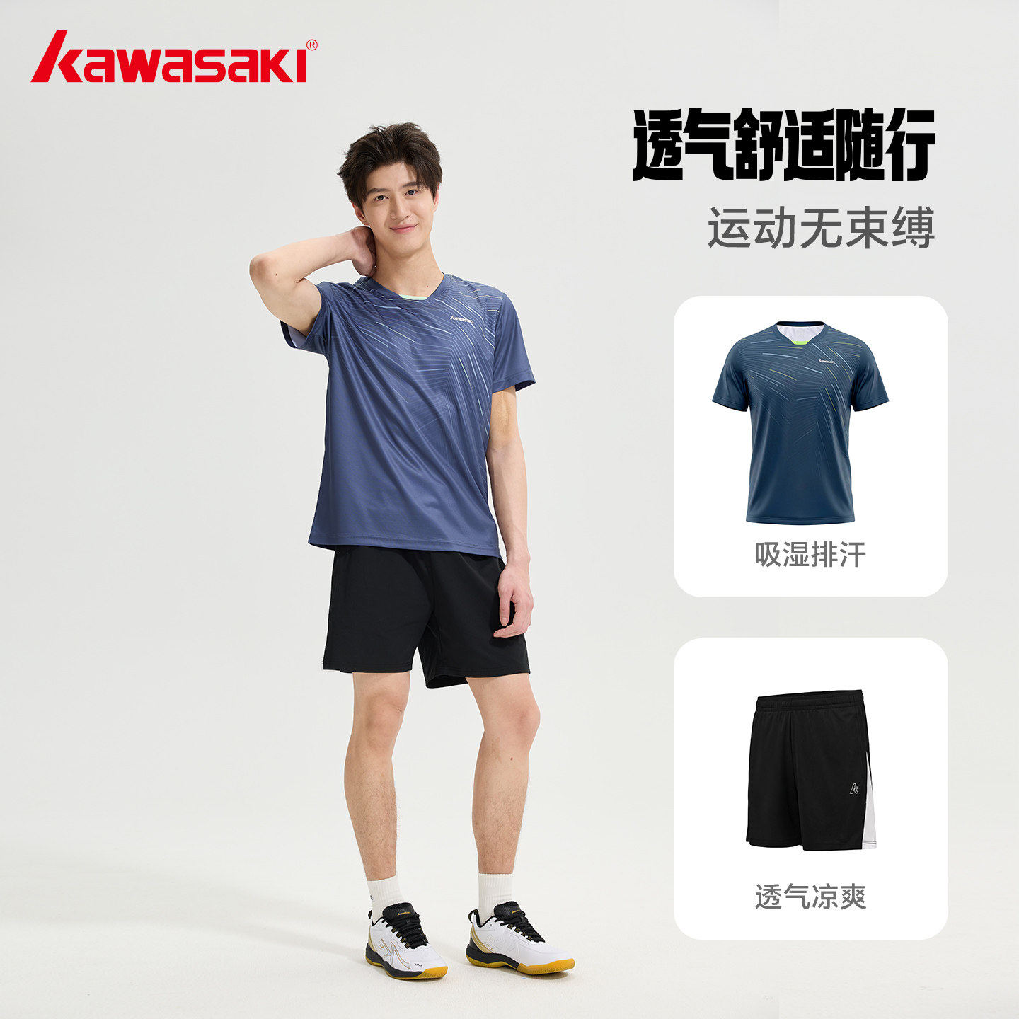 川崎kawasaki羽毛球服男款短袖上衣套装速干吸汗透气训练比赛运动