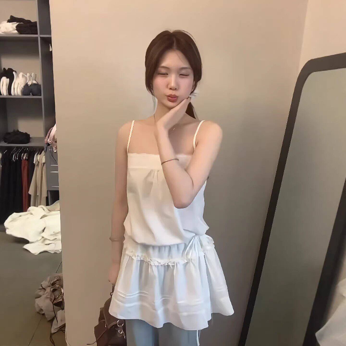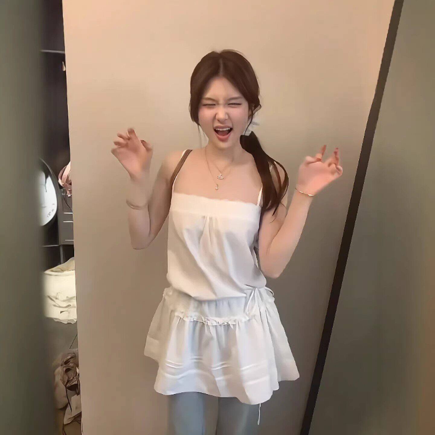甜美可爱叠穿白色吊带裙女2026早春新款显瘦高级感收腰A字连衣裙