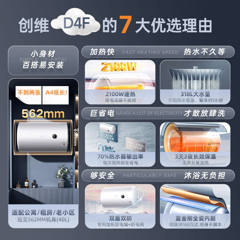 创维储水式电热水器洗澡家用小型出租房用40升卫生间节能50升60