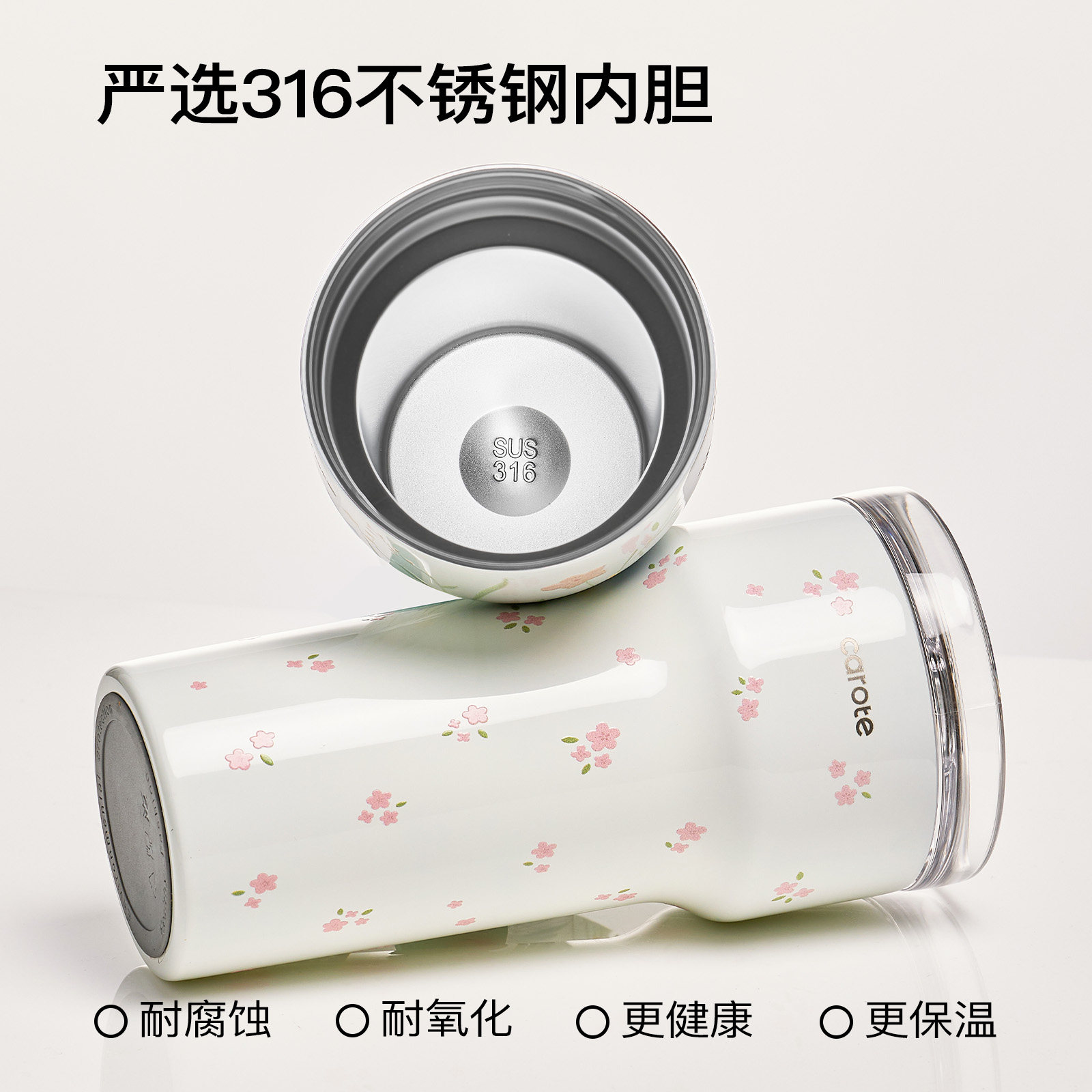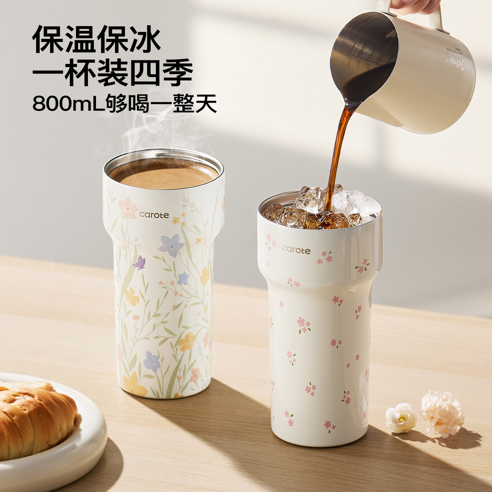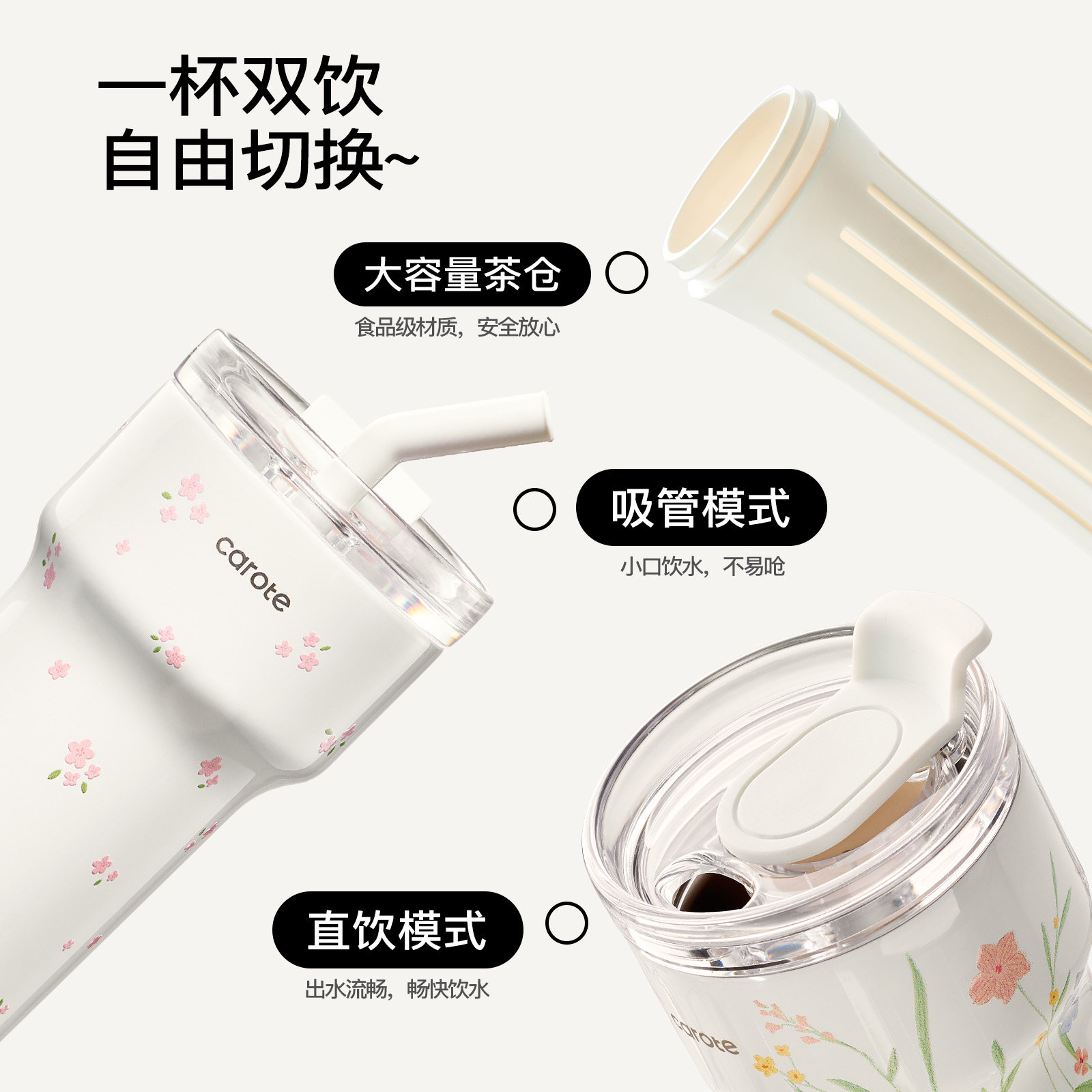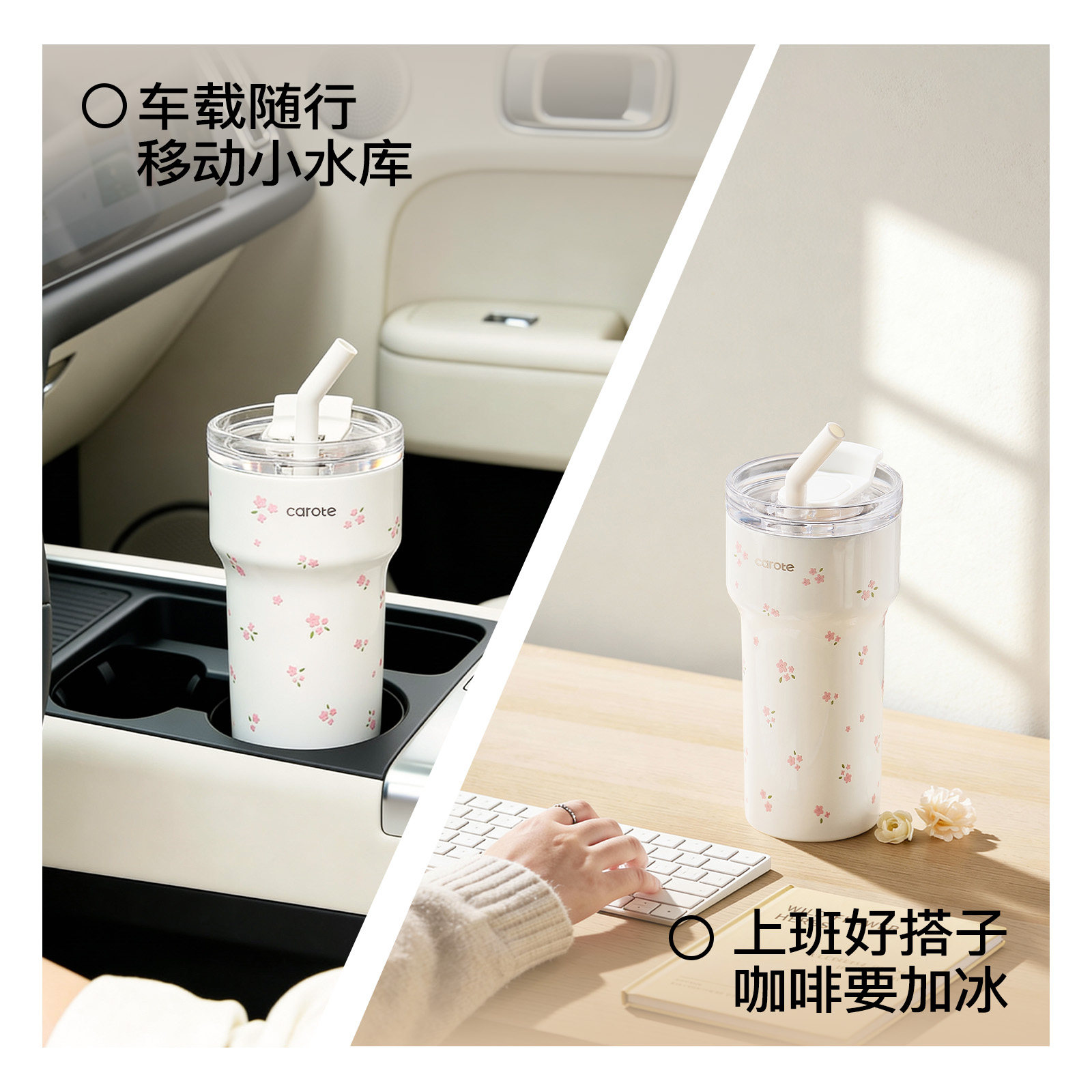 卡罗特大容量吸管杯316不锈钢保温杯女咖啡杯办公室保冷冰霸杯子