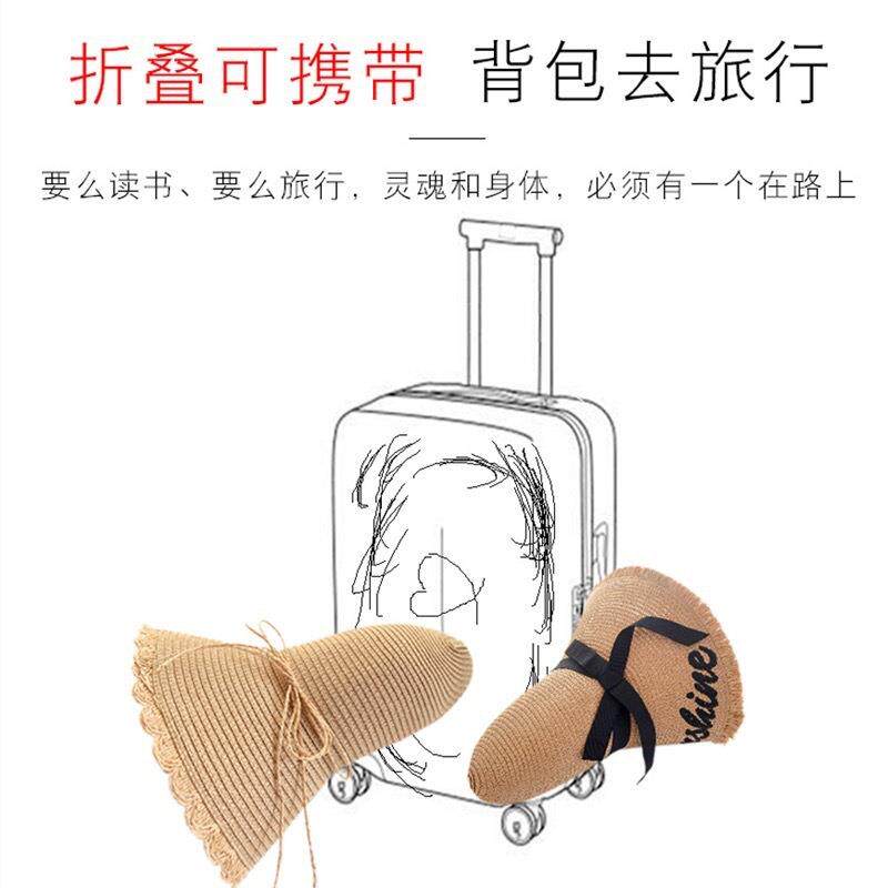 草帽女夏季大檐防晒沙滩帽海边网红遮阳帽韩版帽子白色太阳帽折叠