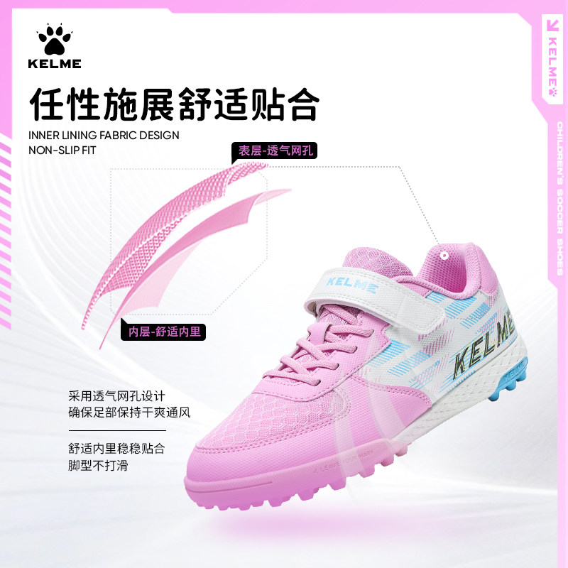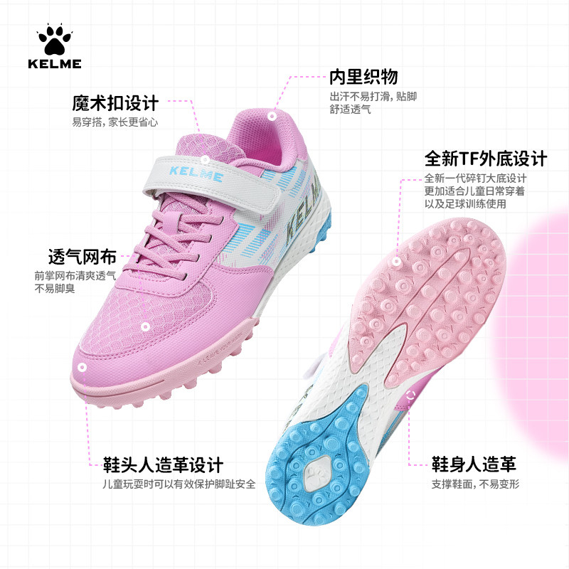 KELME卡尔美儿童足球鞋女孩小学生男透气专业TF碎钉训练比赛专用