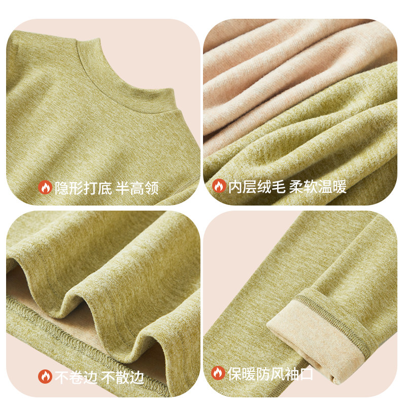 莹柔7057秋冬中厚棉秋衣秋裤圆领修身保暖内衣棉毛衫基础打底套装