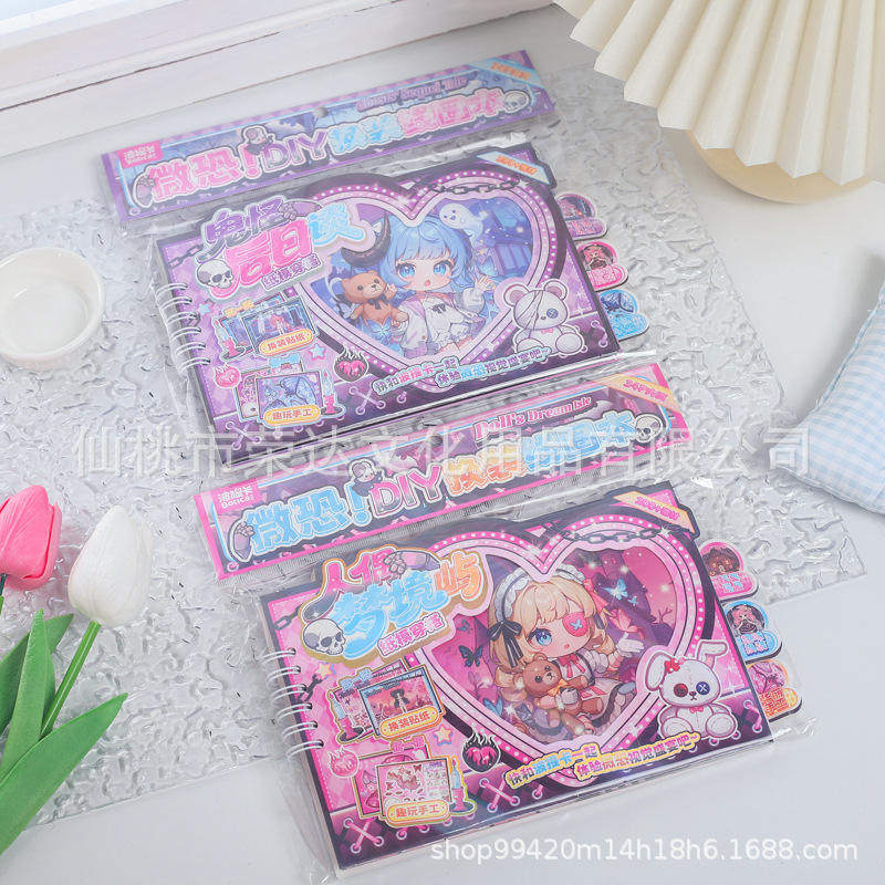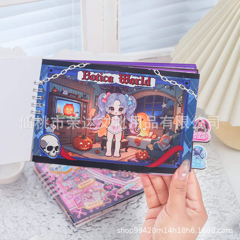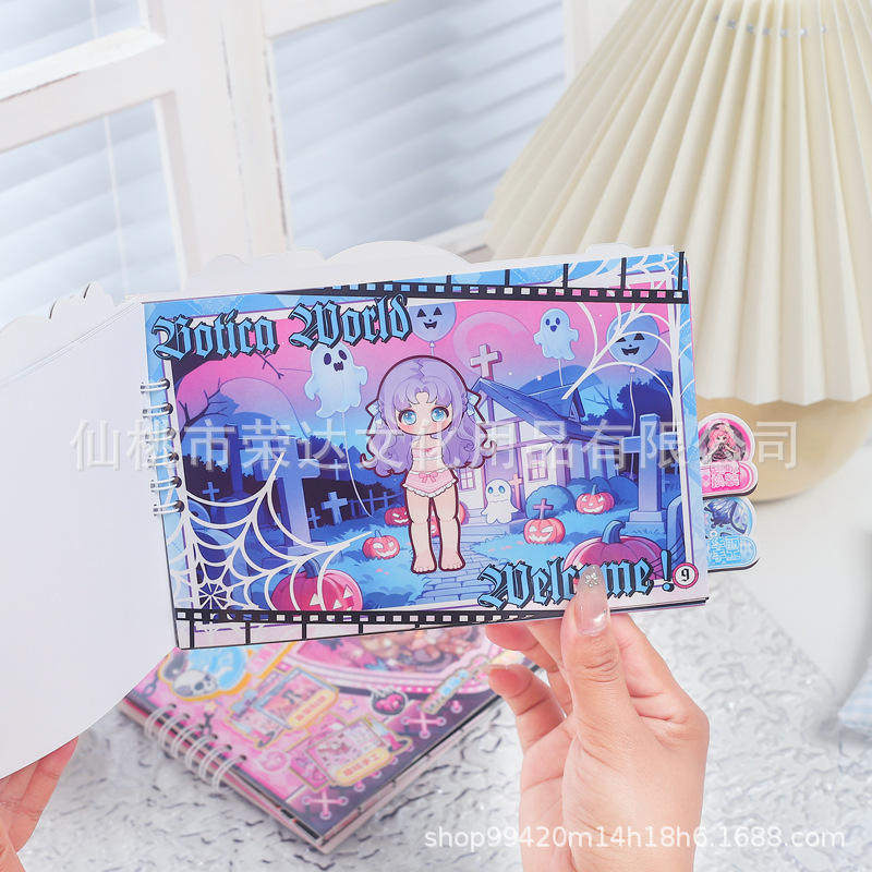 创意微恐DIY换装线圈本暗黑童话控可动人偶换装打扮贴纸本手工